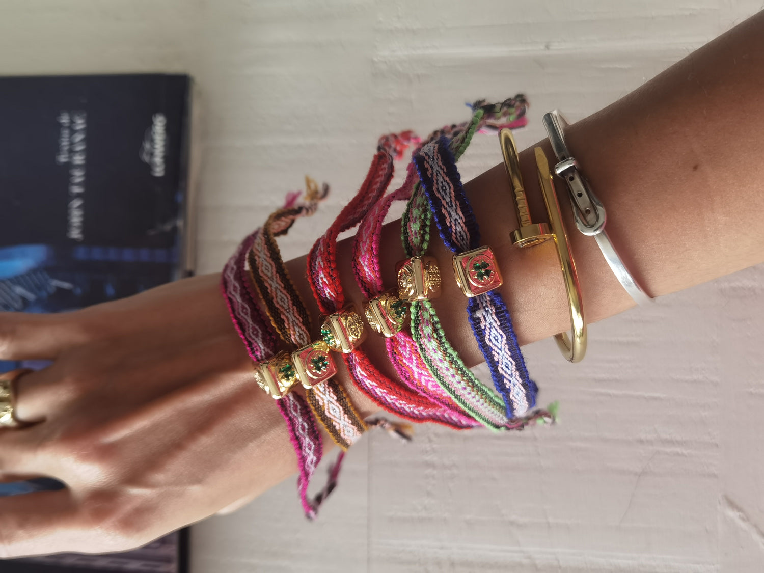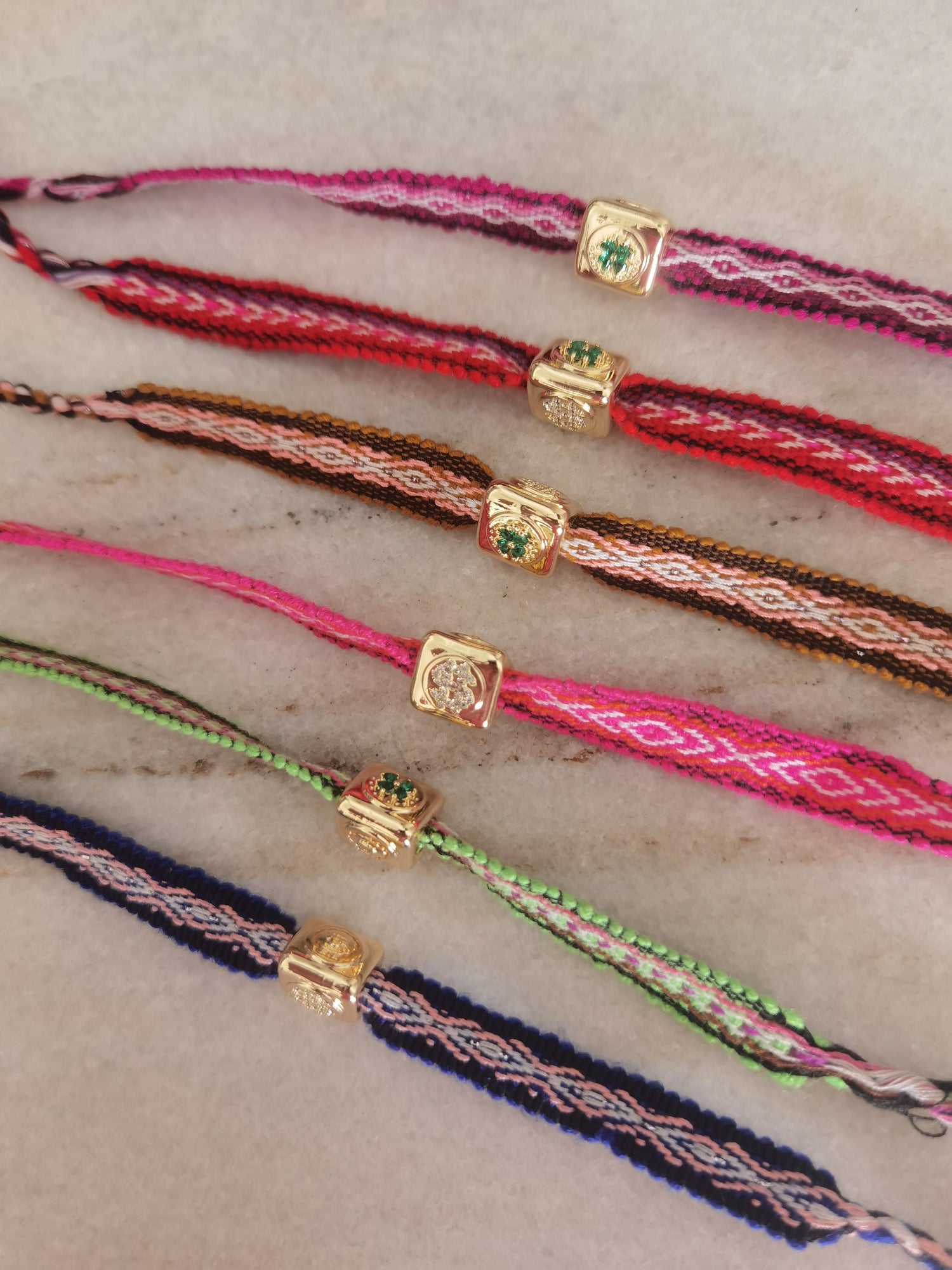Brazalete tejido con charm de 3 caras con símbolos para atraer la abundancia a nuestras vidas 💖🌈🙌🏻🤑