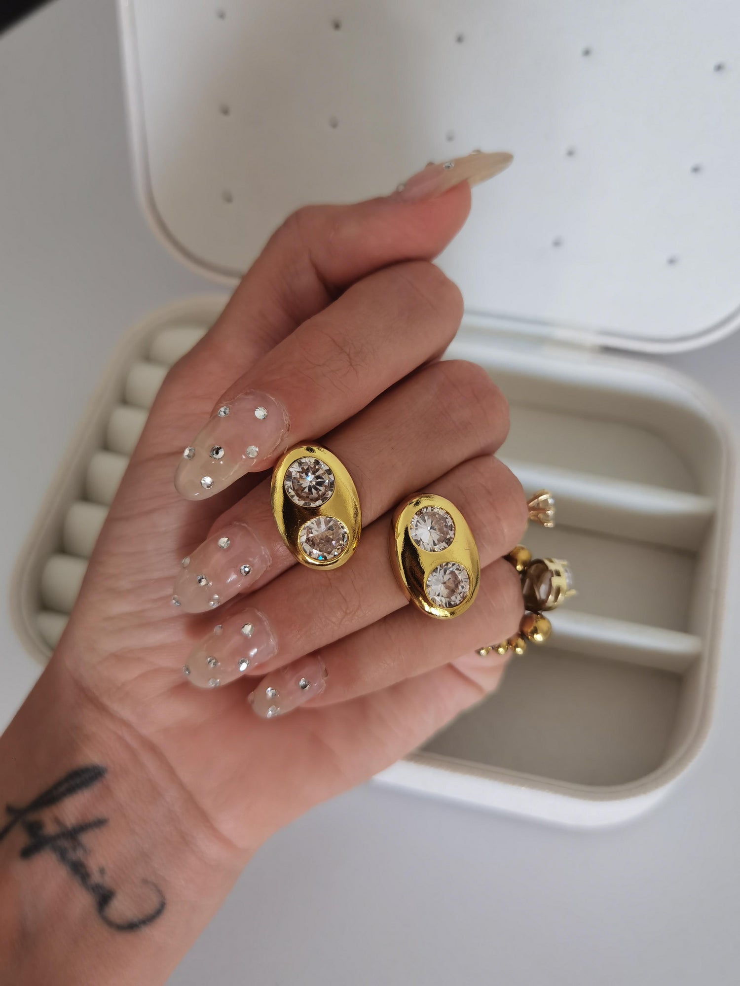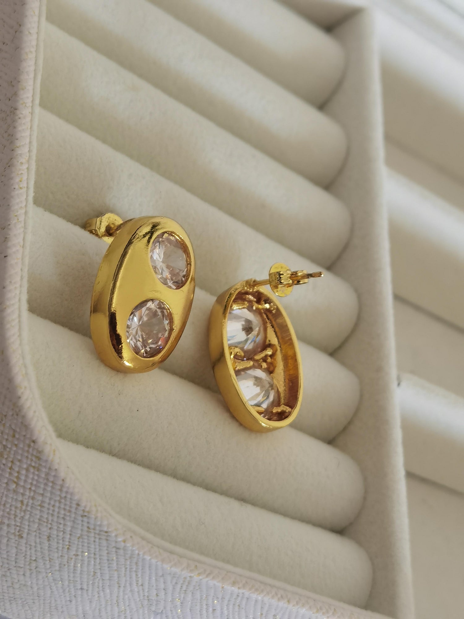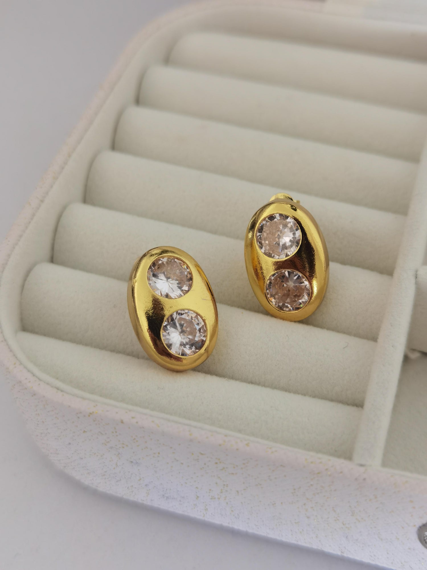 Los aretes que siempre te harán ver arreglada y glamourosaaaa 🤩 el detalle de sus 2 zirconias los convierten en un par de aretes únicos e inigualables!