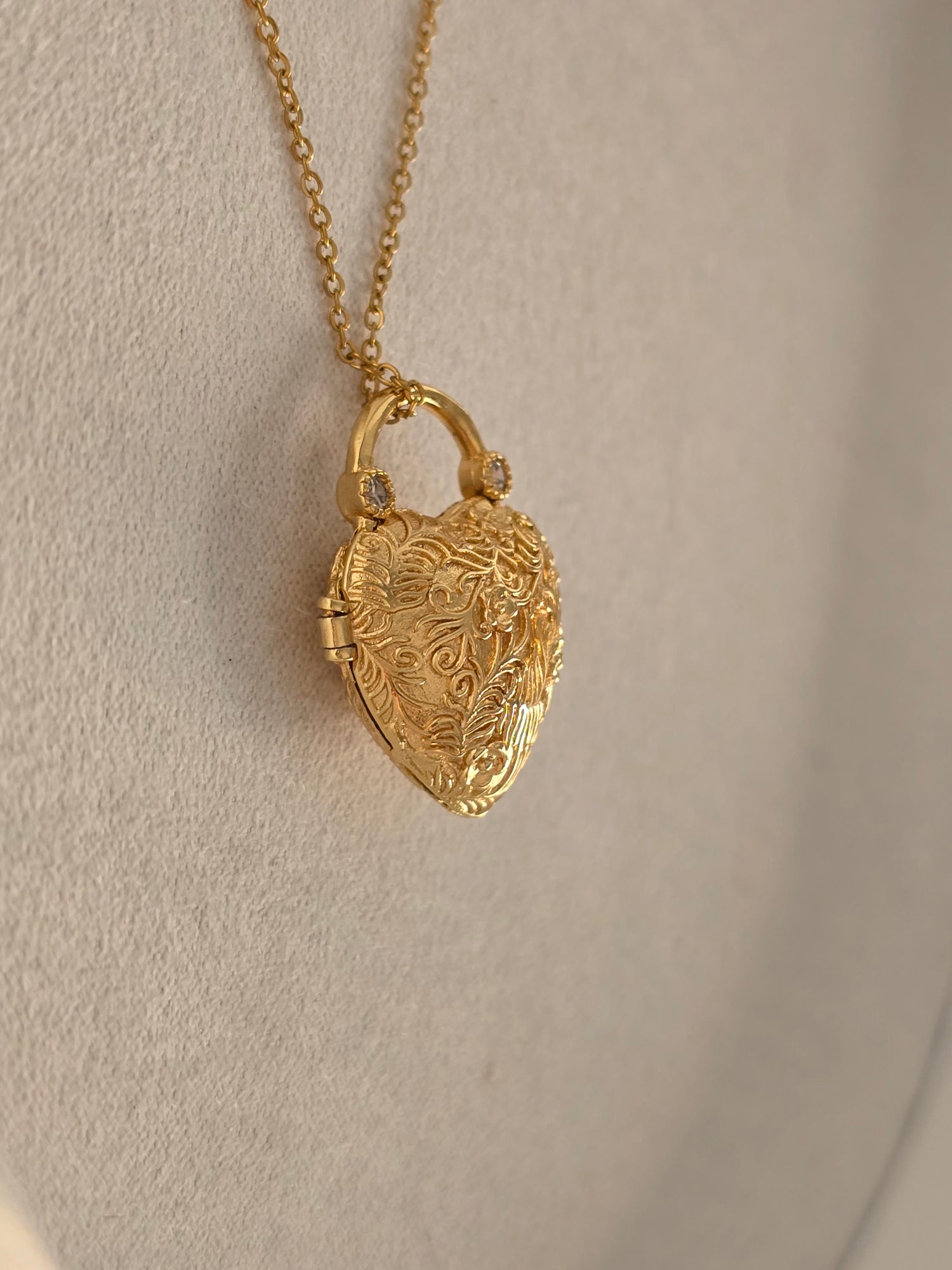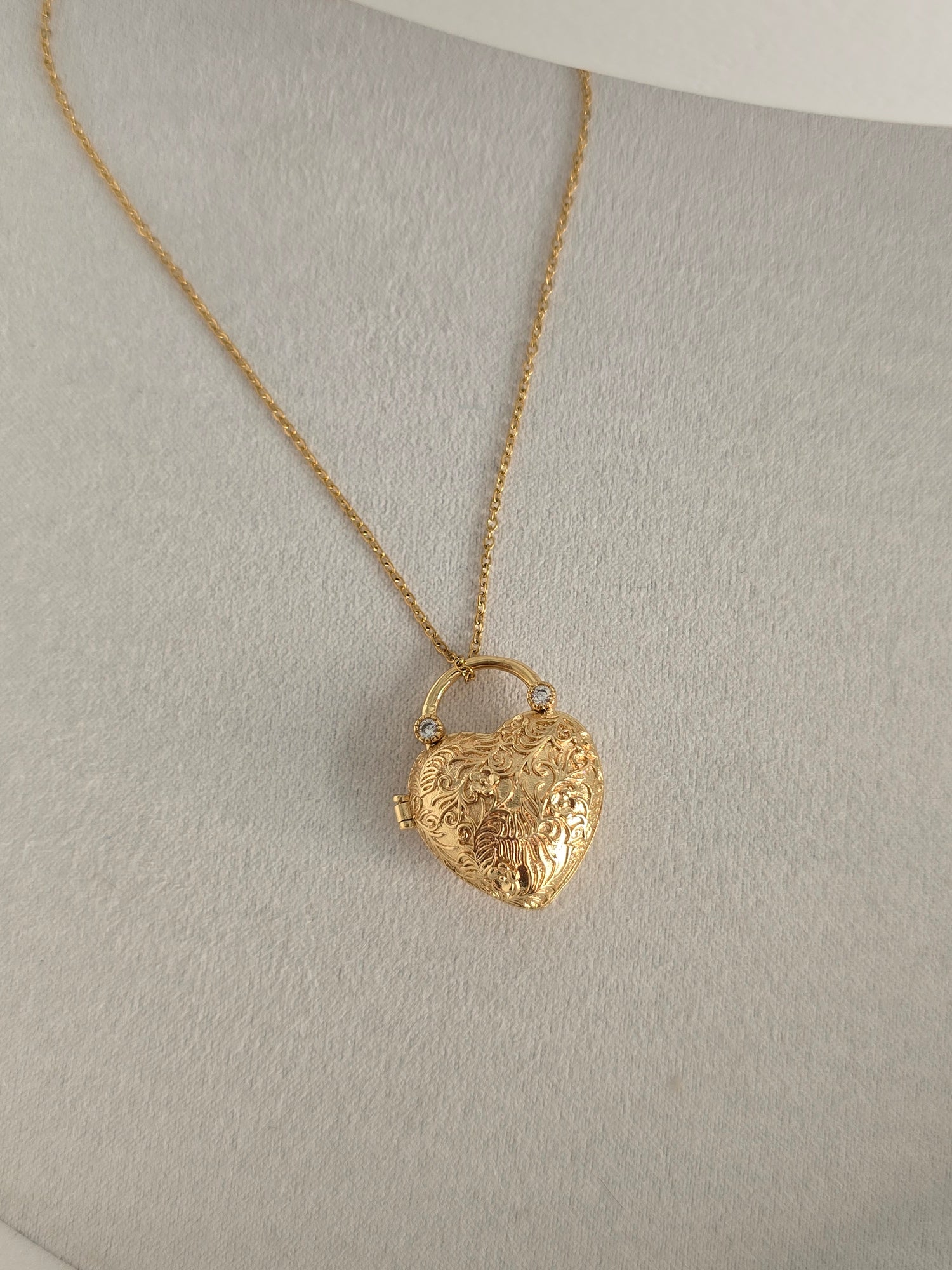 Relicario de corazón "gordito" con pequeñas zirconias blancas , para que lleves a esa persona(s) especial cerquita de tu corazón ❤️