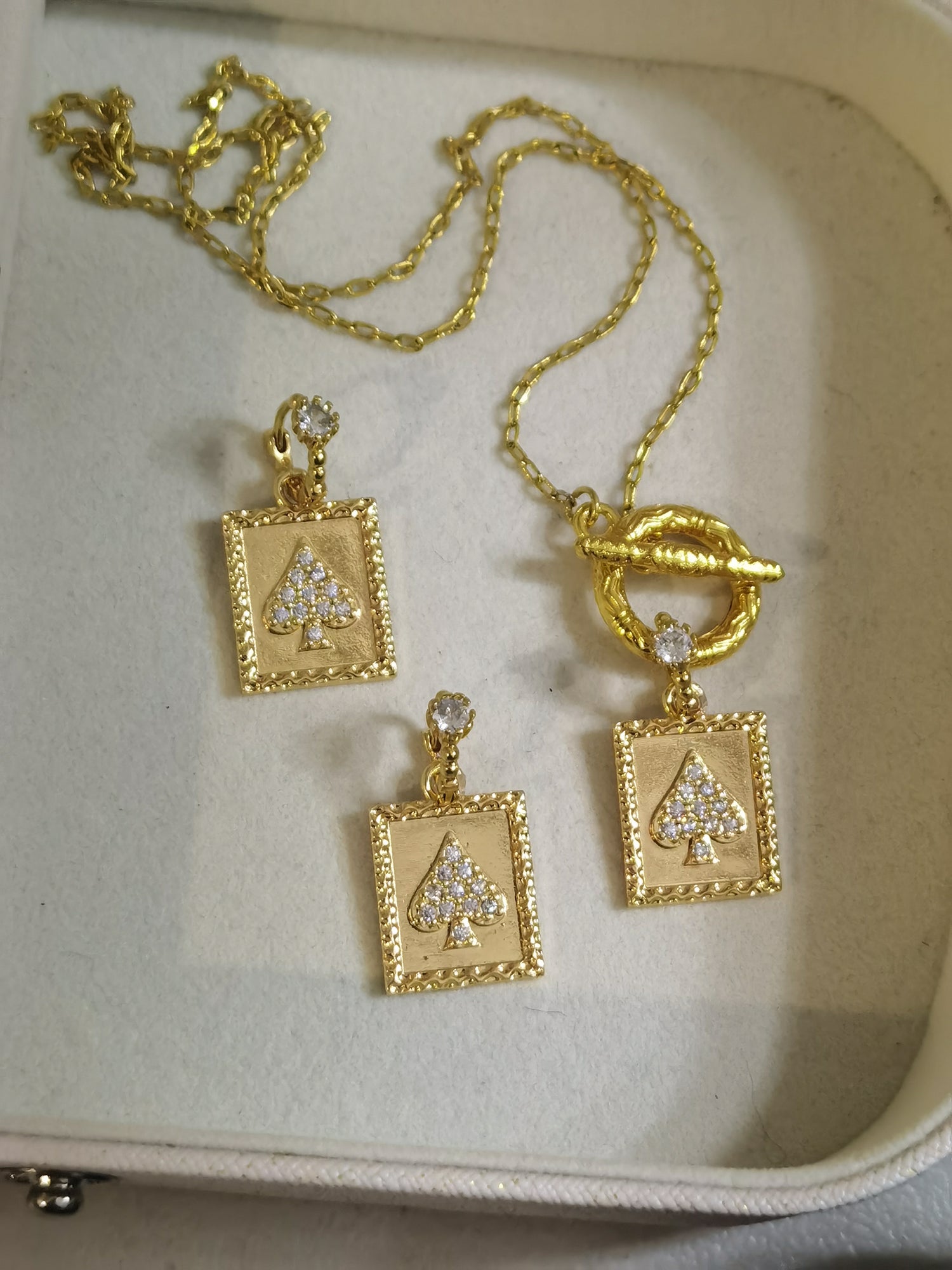 OJO no incluye par de aretes , es 1 collar con 1 as bajo la manga