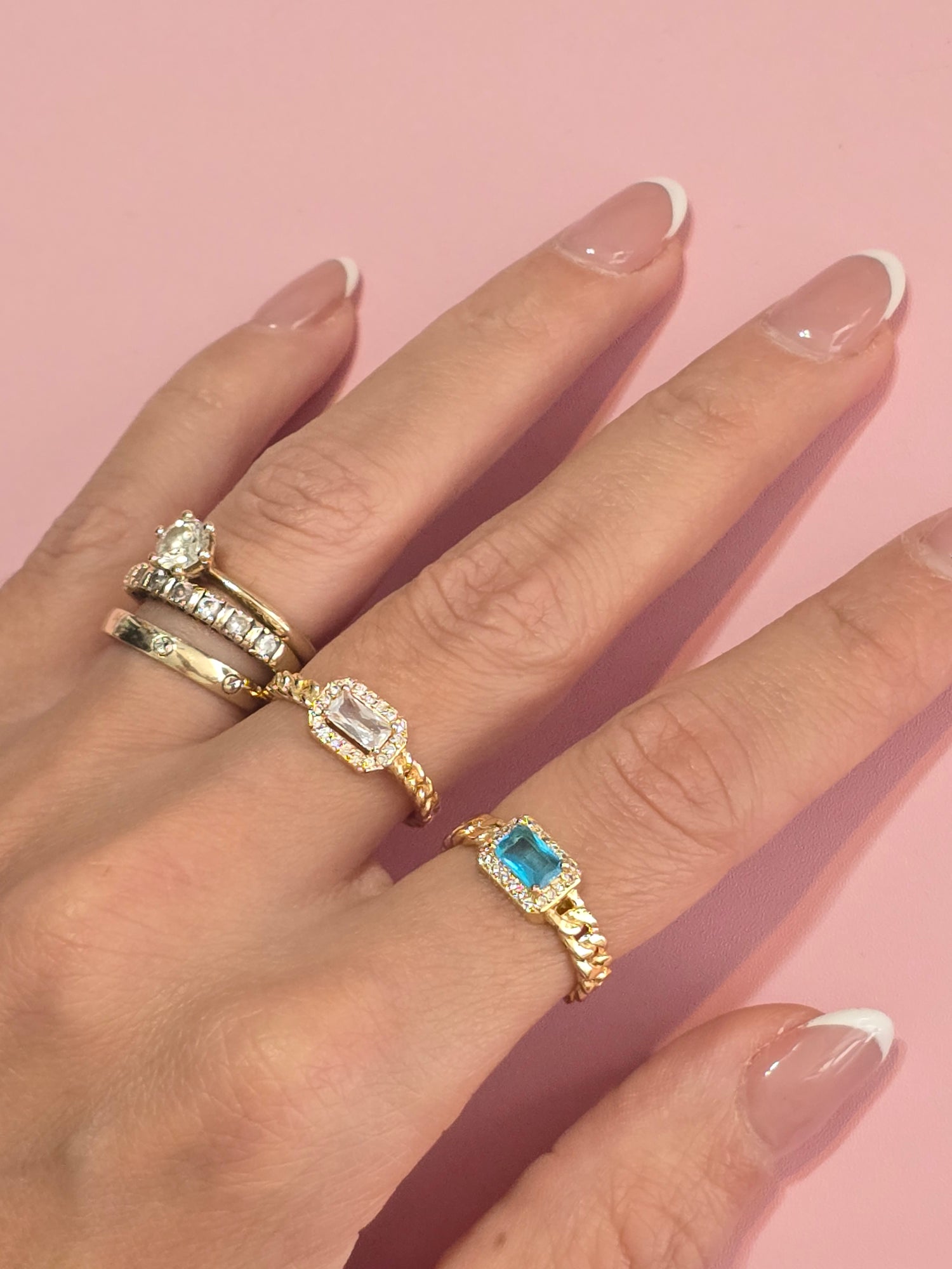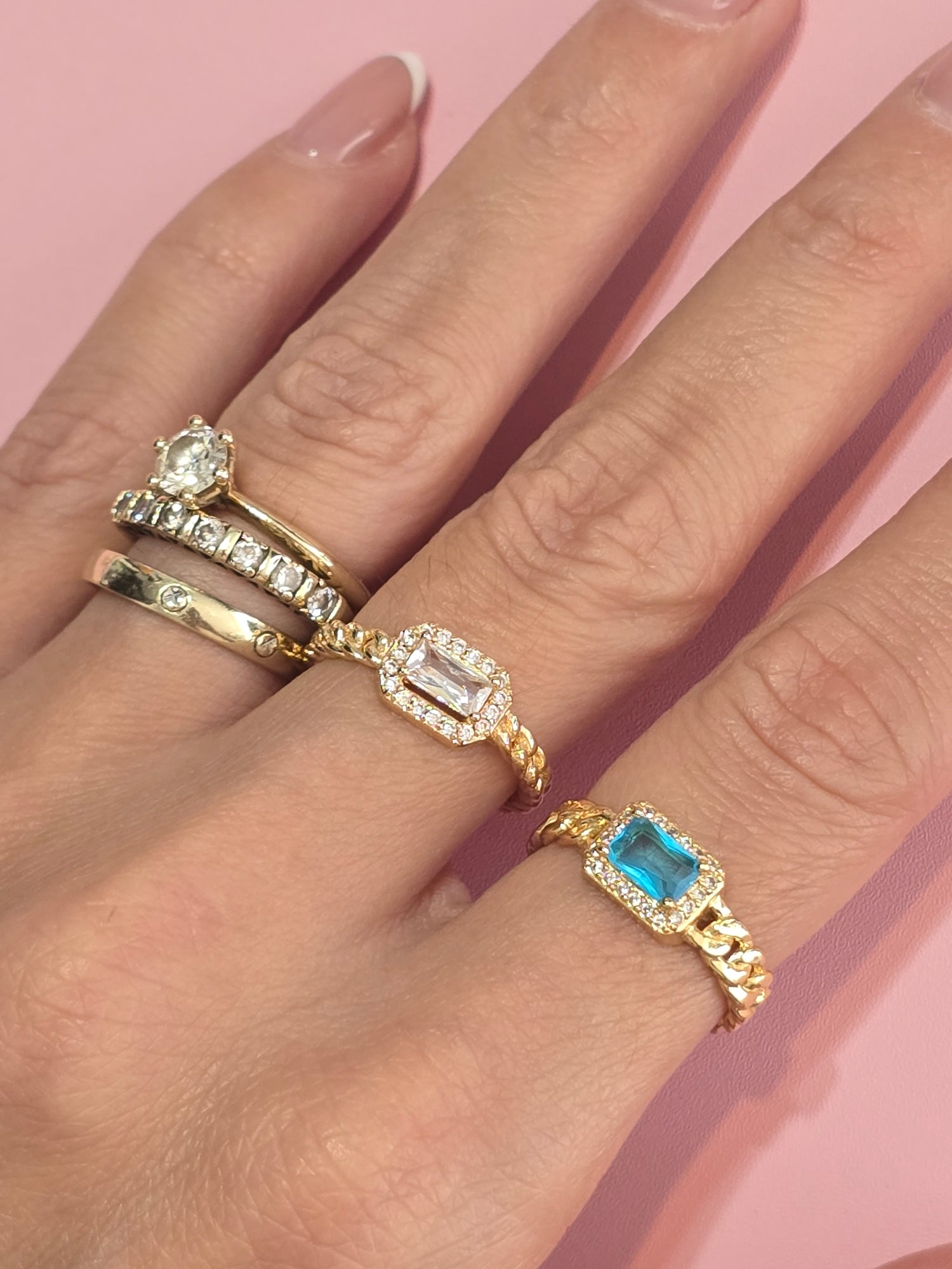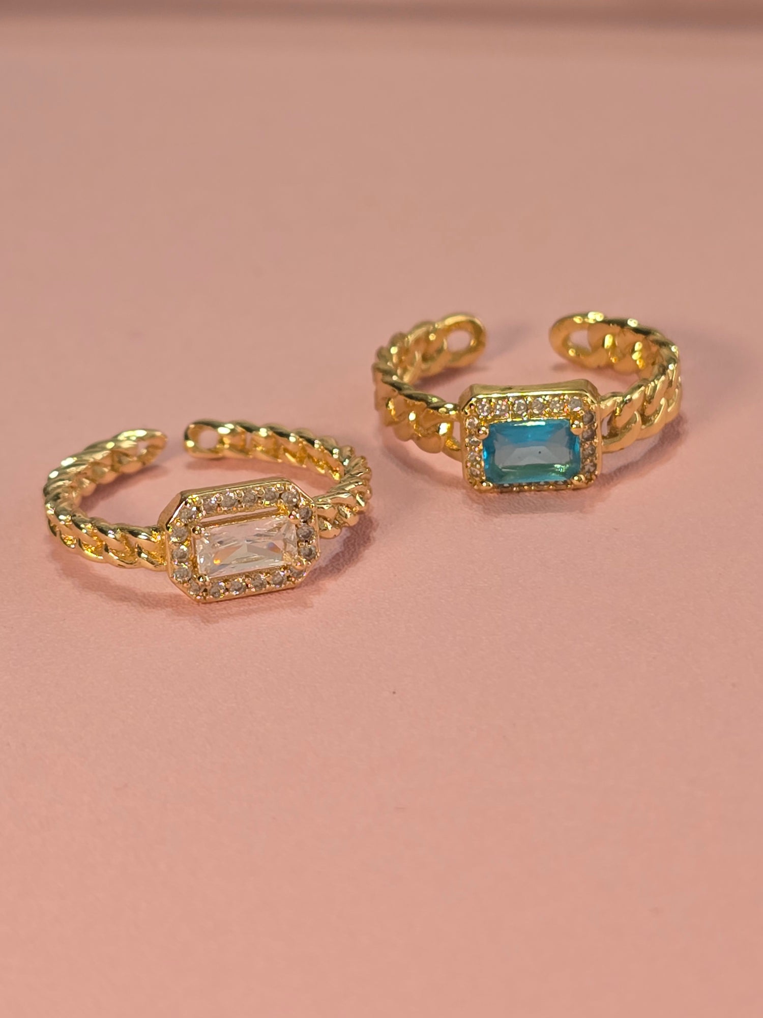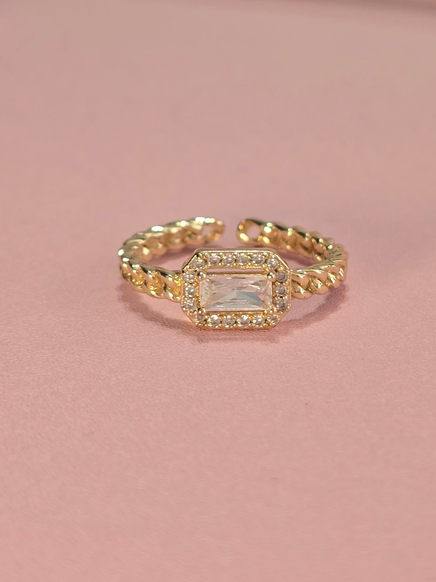 Anillo con zirconia rectangular ajustable, úsalo solito o con más anillos , de cualquier forma lucirá ESPECTACULAR!