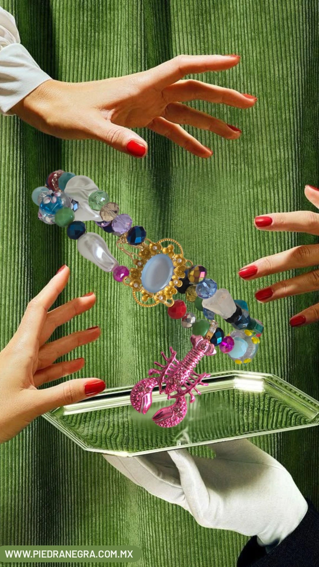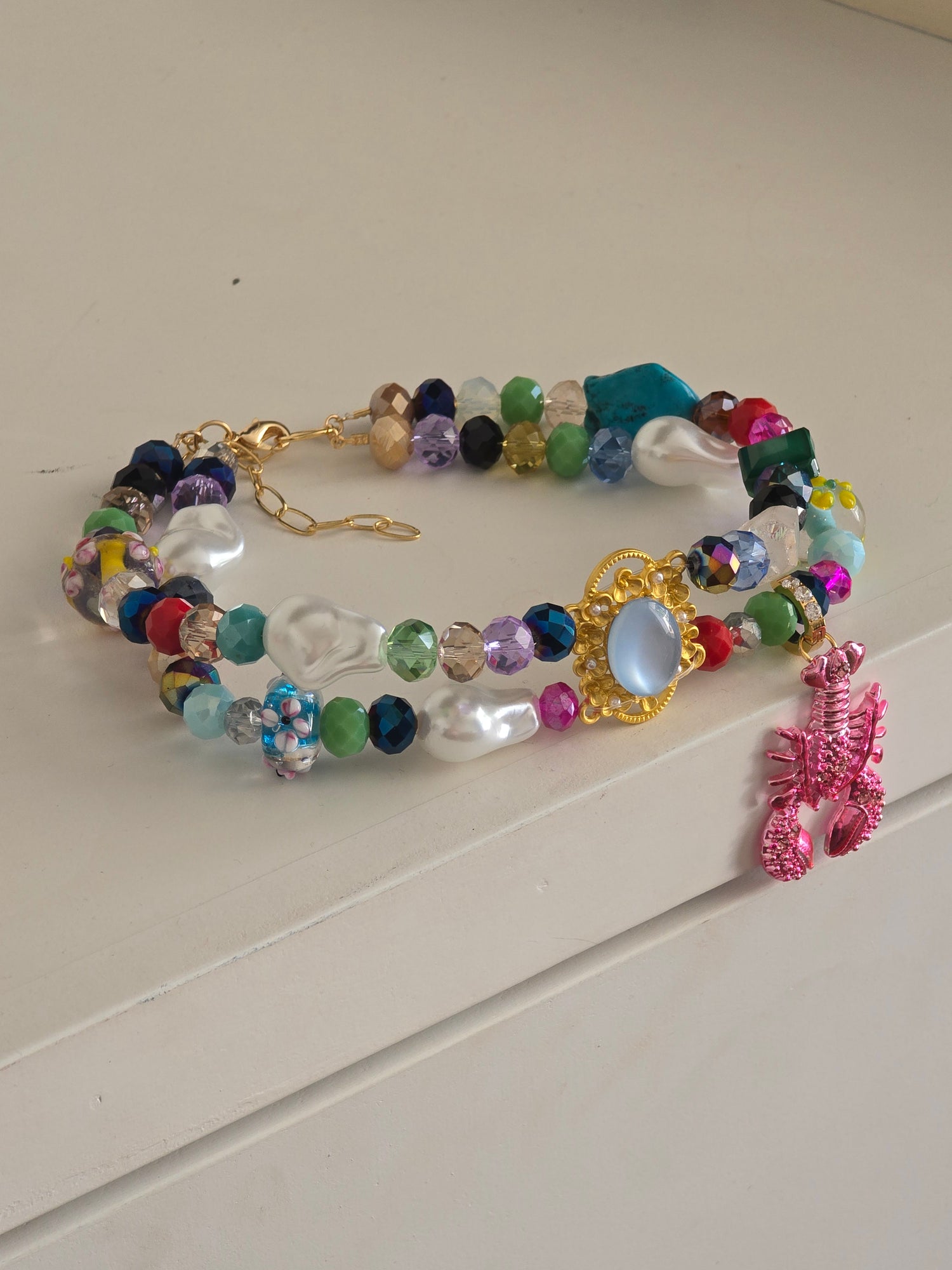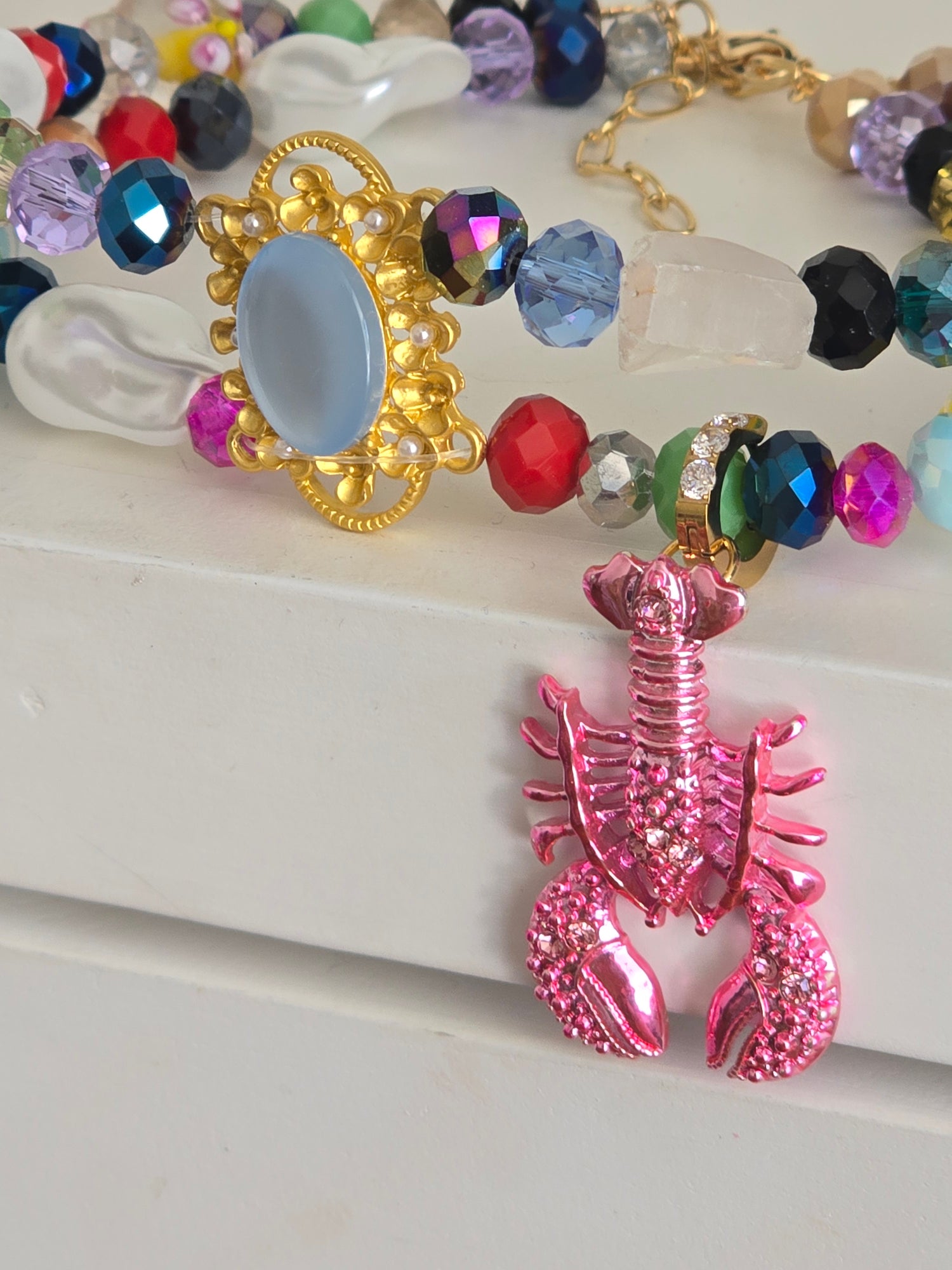 Arma increíbles outfits con esta bellezita colorida ! , choker mix doble con langosta rosa que puedes usar también de arete o mover los de lugar en tu collar para armar diferentes looks (ya sabes que aquí le sacamos jugo a todo 😉)