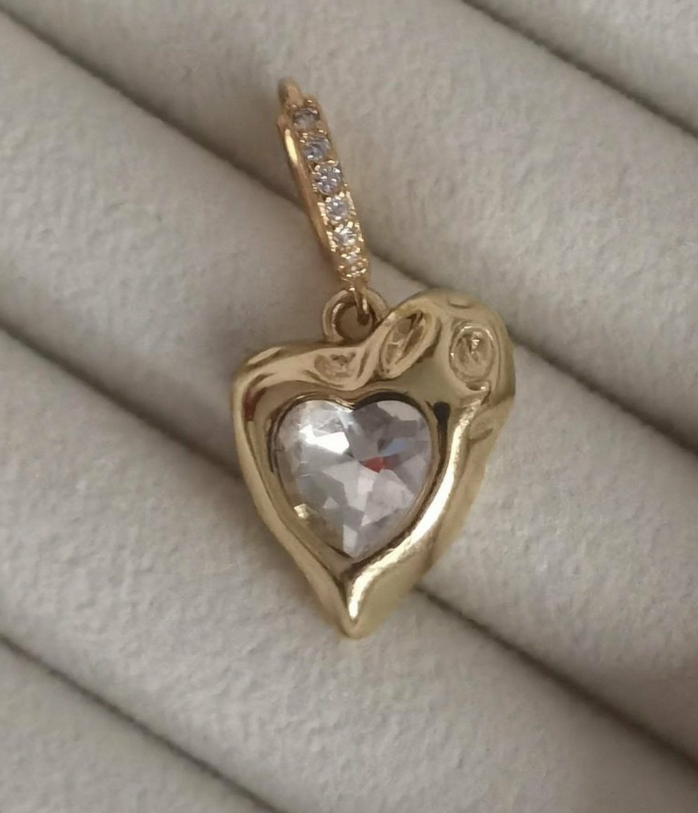 El charm de diamante de corazón más hermoso que hoy verán tus ojos, ya que por su forma irregular lo hace un charm muy fuera de lo común, úsalo para recordar lo afortunada y amada que eres.