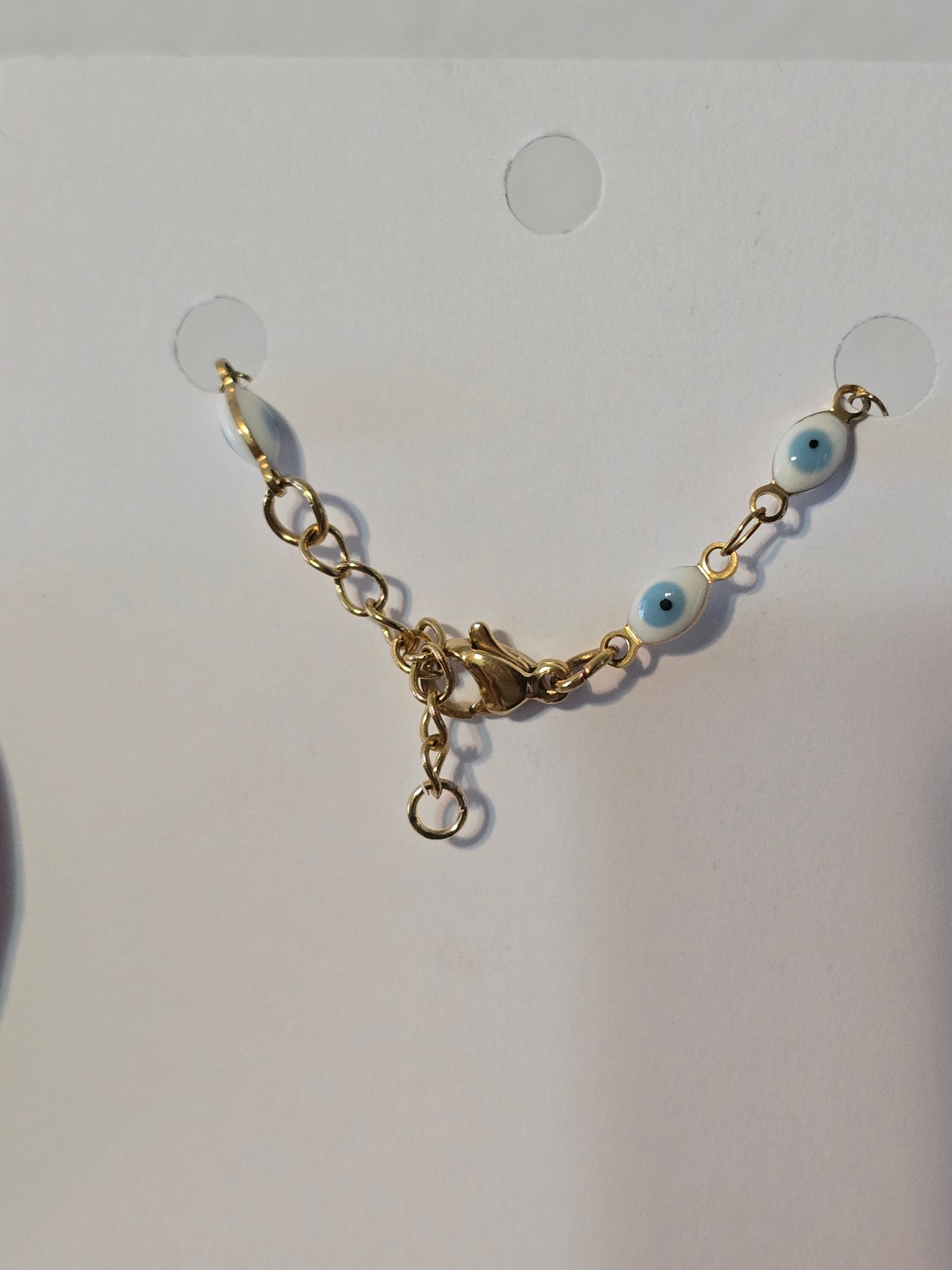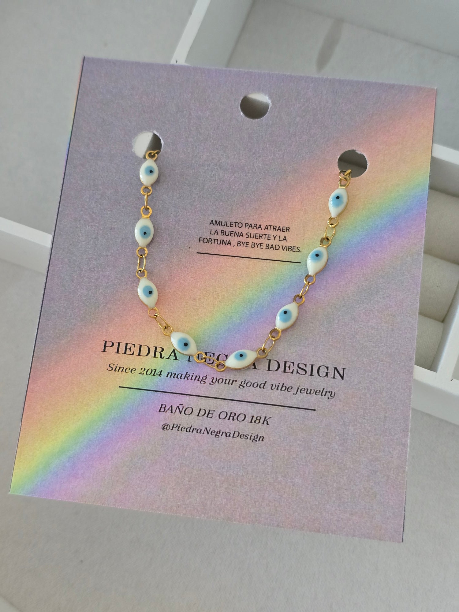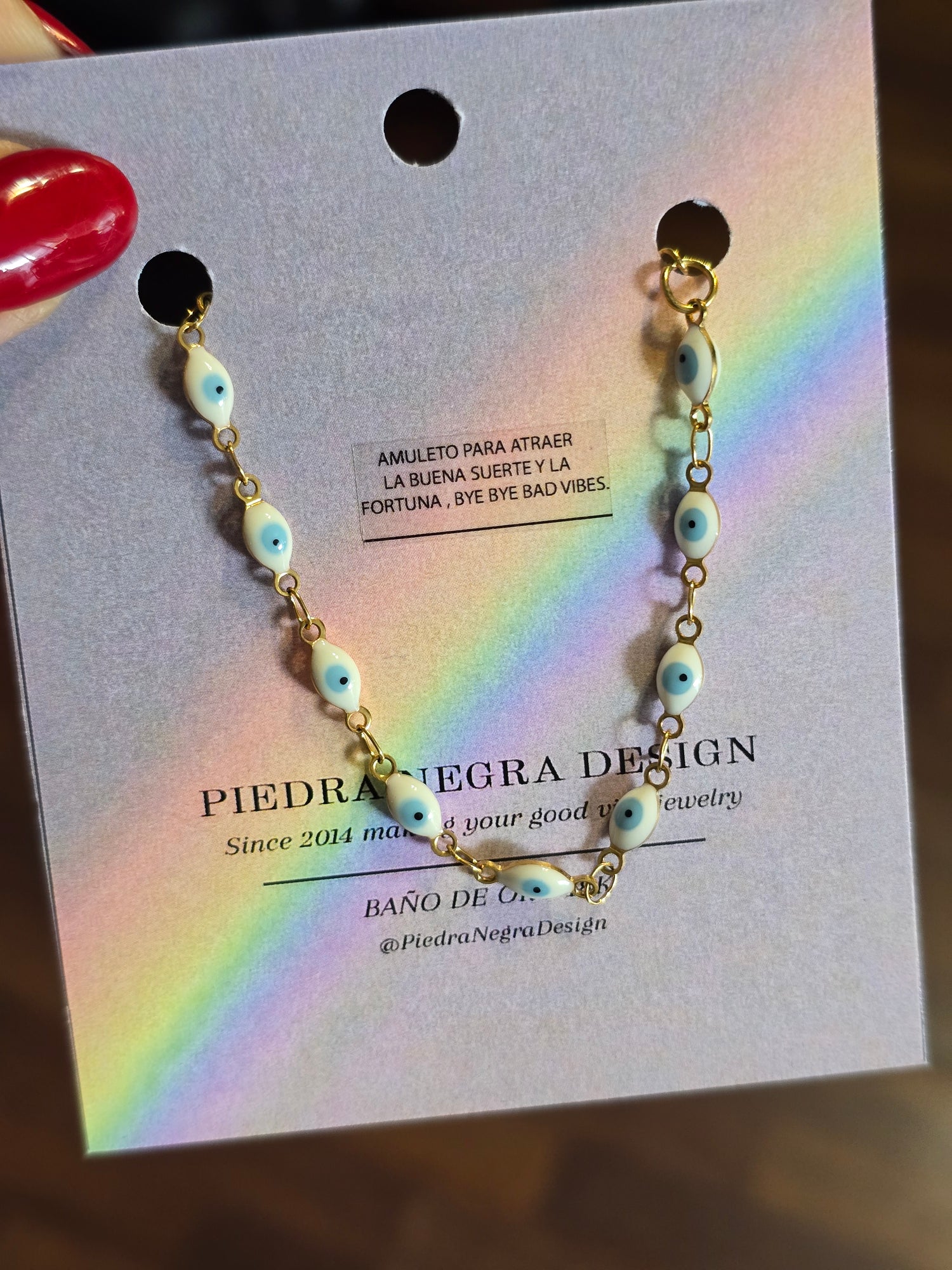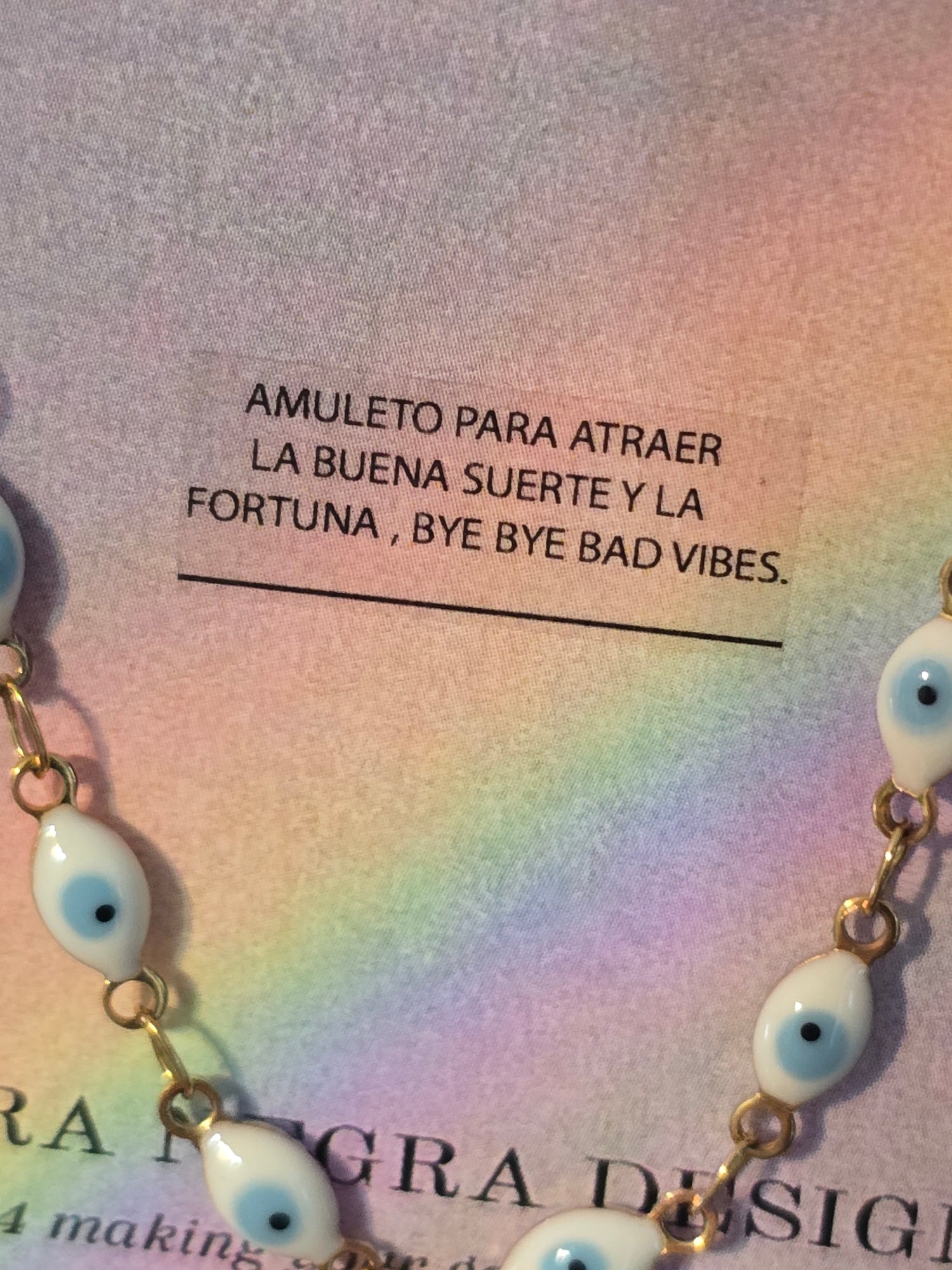 BYE BYE BAD VIBES !!! Aquí no queremos males de ojo, malas vibras ni personas que nos quiten la paz , por lo tanto creamos este amuleto para que estés bieeeen protegid@ ! :) (más vale prevenir ! ) aparte de que los mini ojitos son una belleza y se ven increíbles puestos !