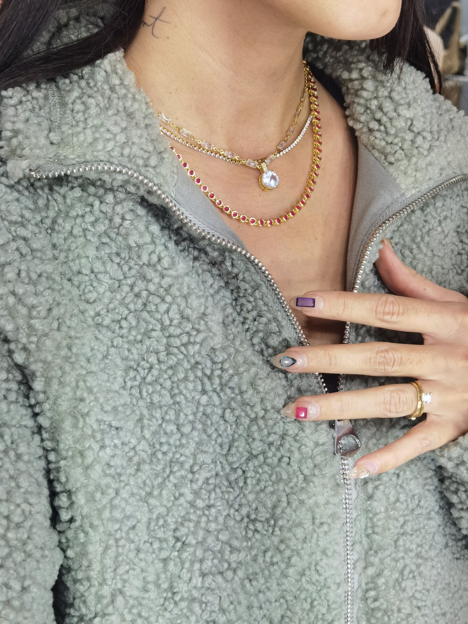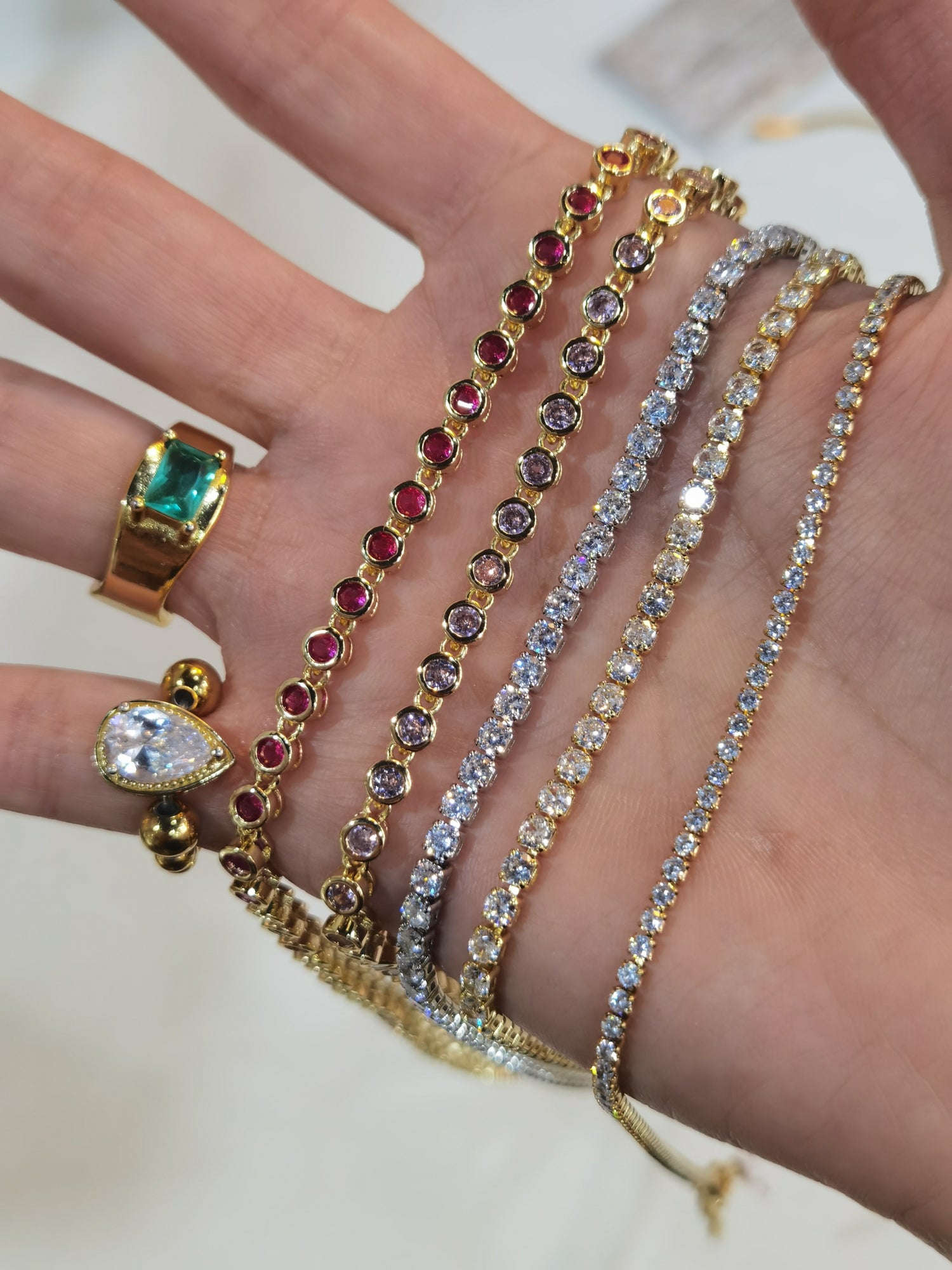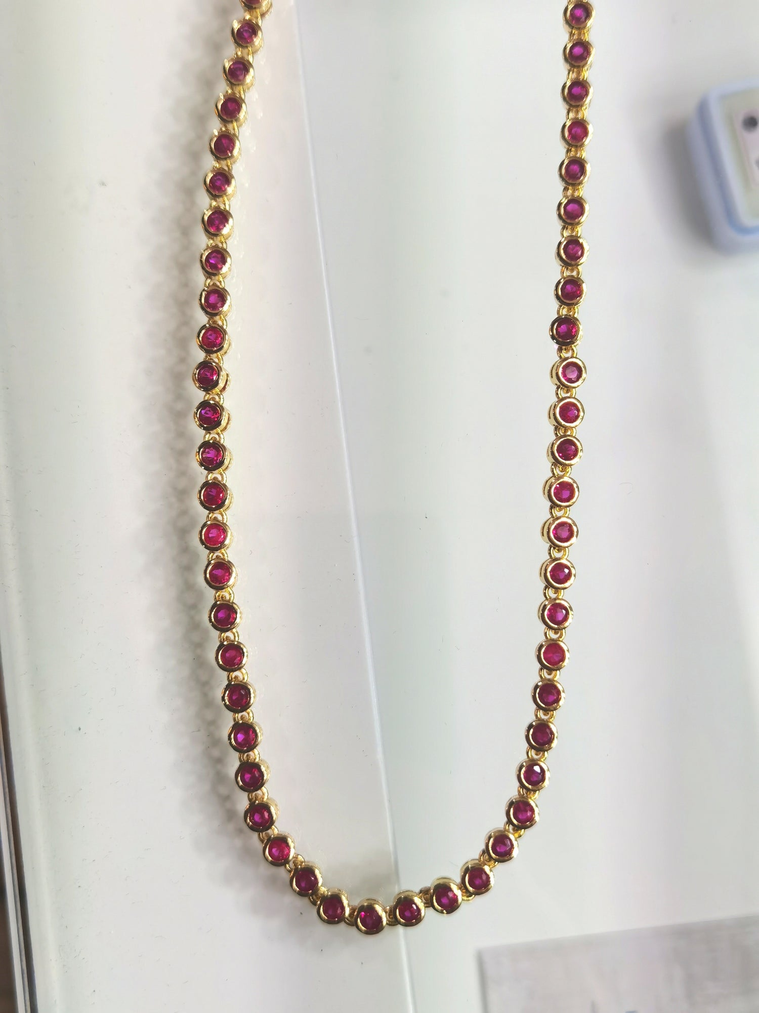 Collar de zirconias fucsia biseladas con baño de oro 18K , prepárate para darle un pop de color a tu look de siempre y salir de lo común 🙌🏻