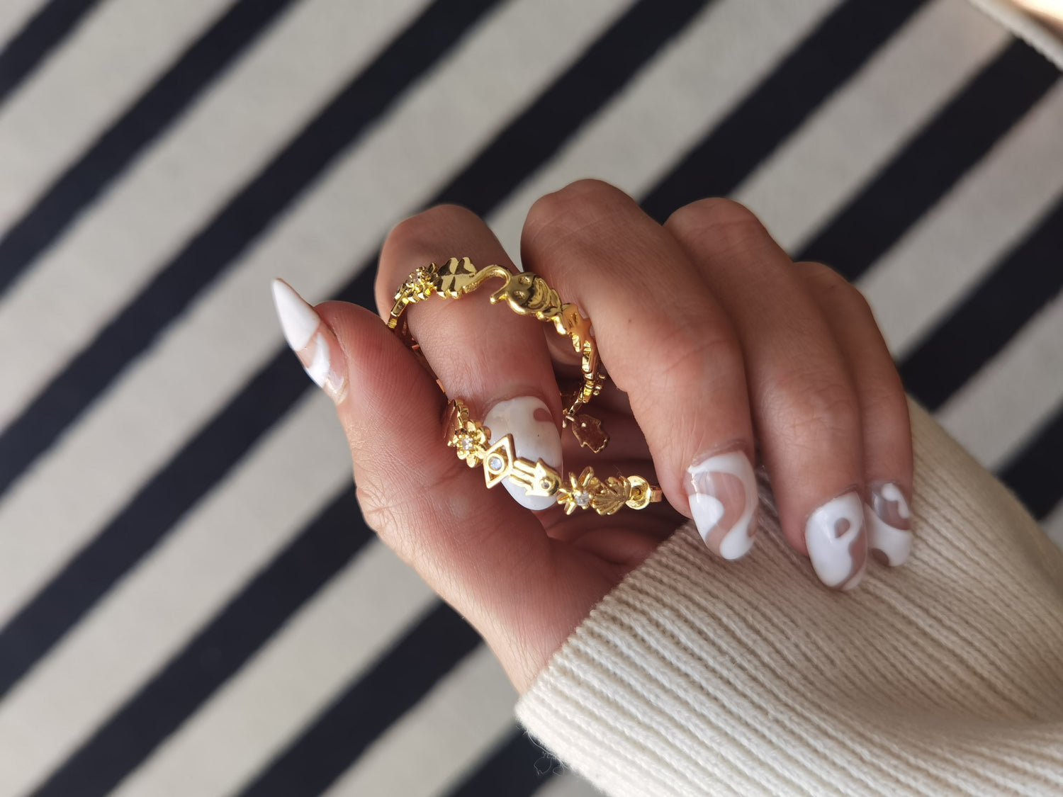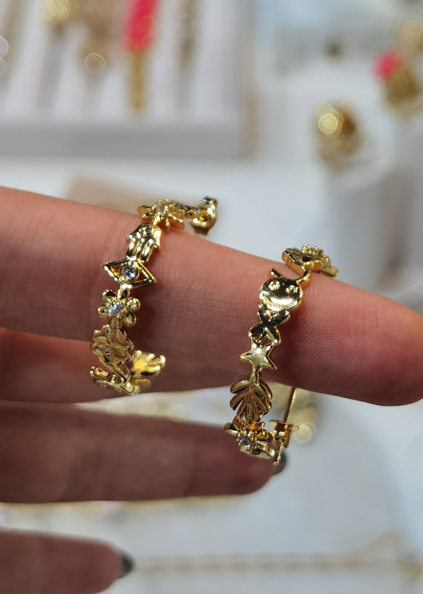 Las arracadas de la suerte! están hechas de puras figuritas que te darán pura buena vibra ! aparte de que tienen pequeñas zirconias incrustadas que las hacen brillar súper lindas.