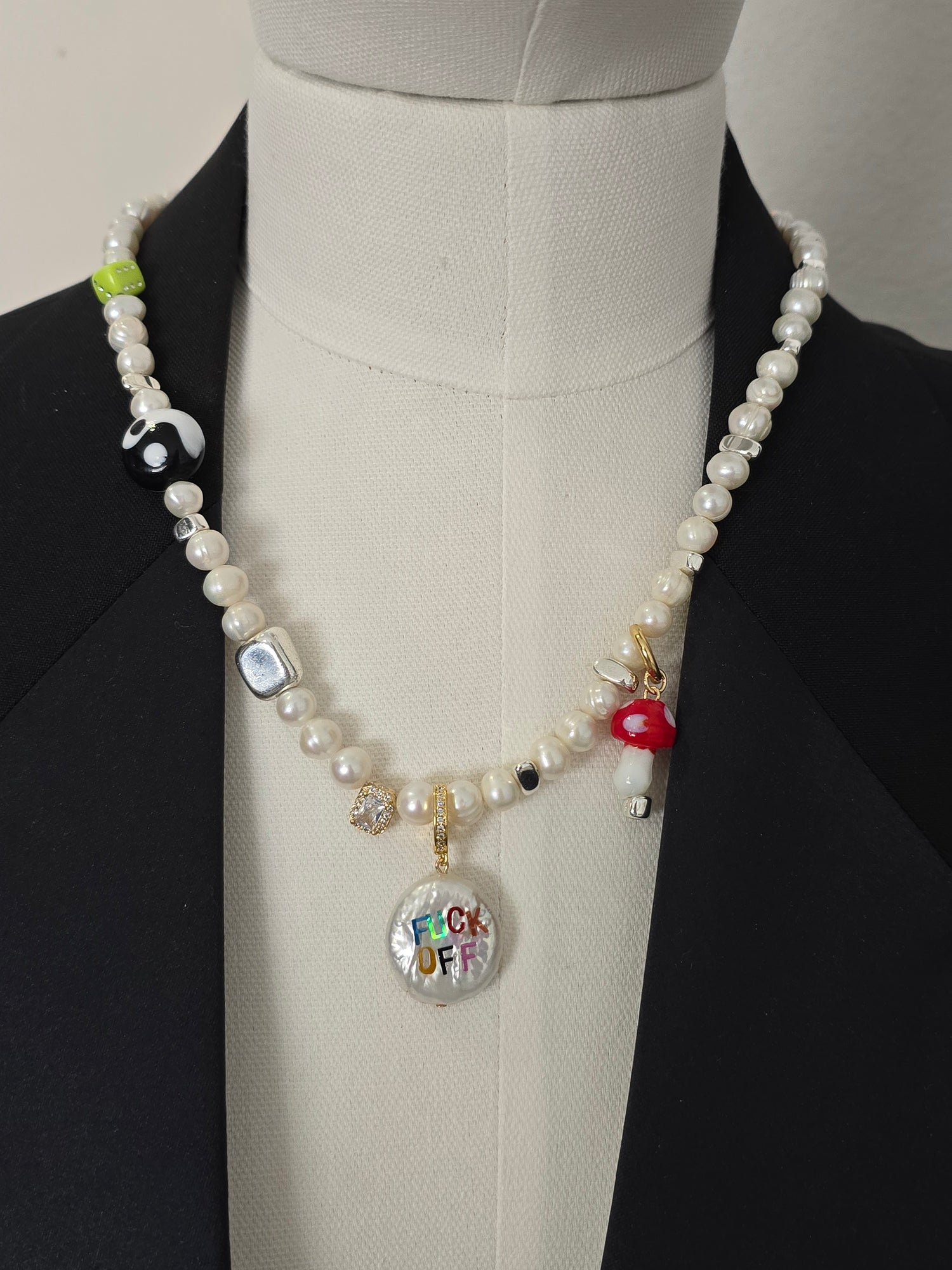 Usa la perla F*ck off y el honguito 🍄 de charm en tu collar o se aretes 🙌🏼