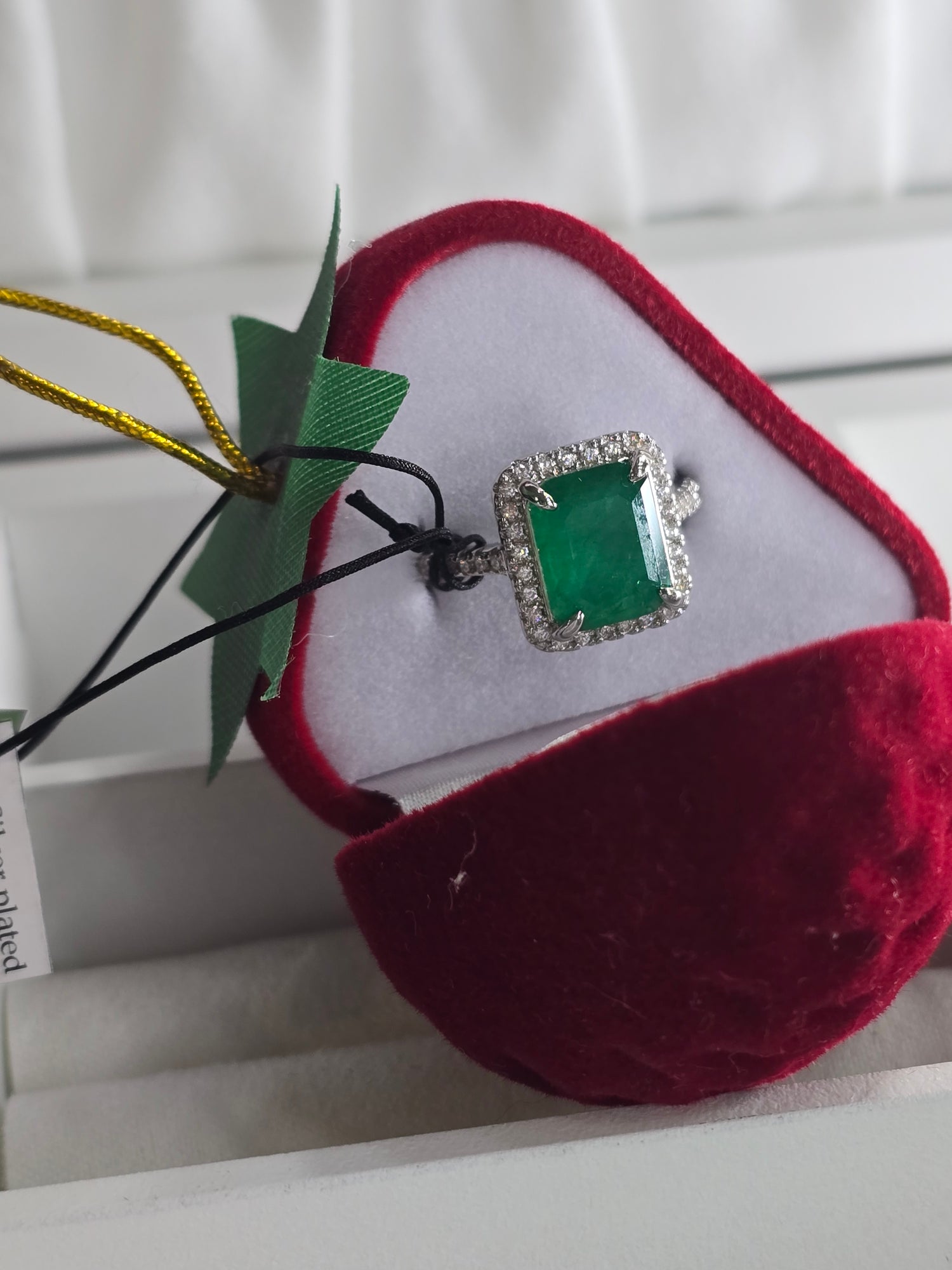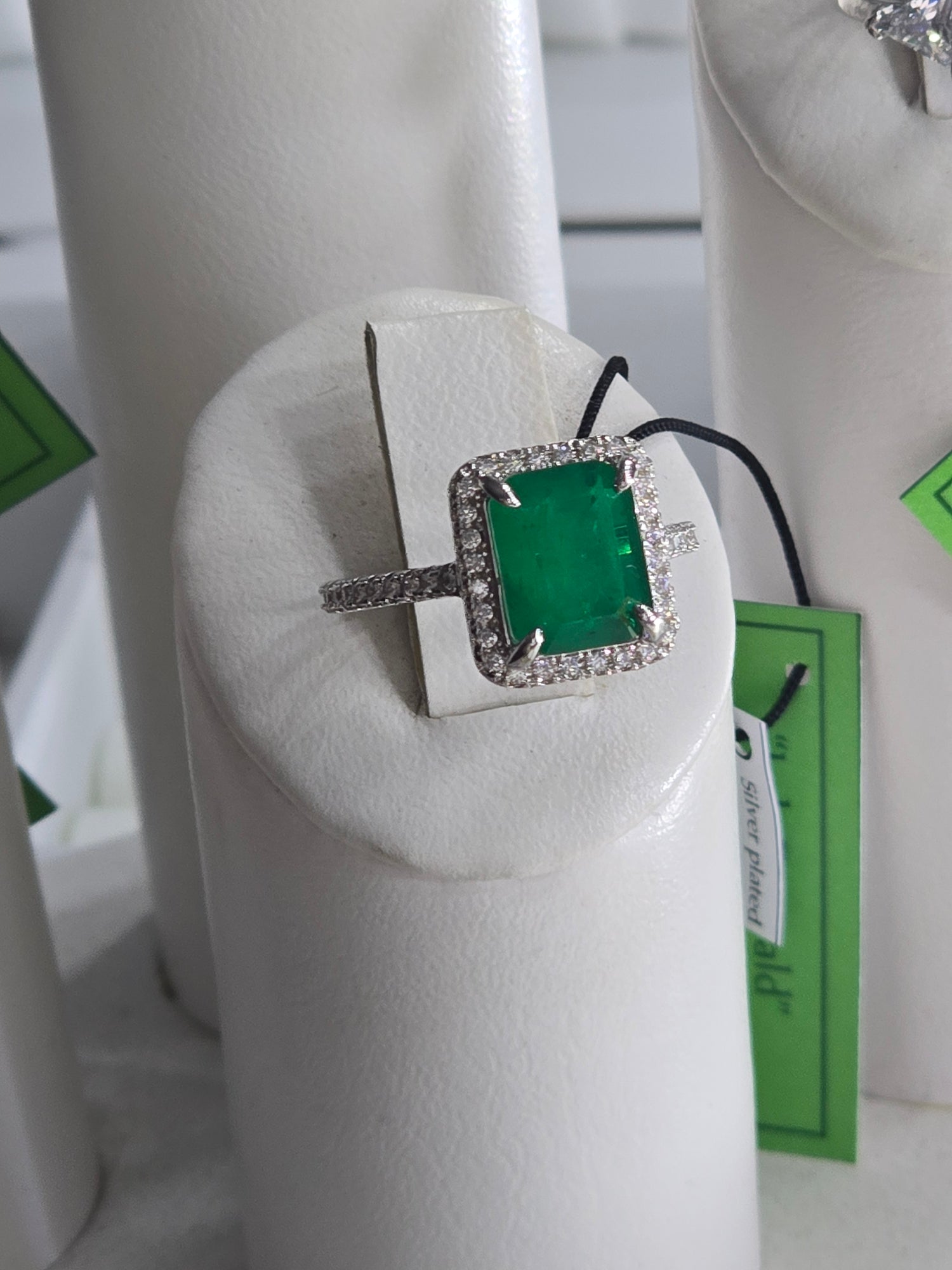 El anillo de esmeralda de laboratorio más hermoooso del condado , tiene un brillo super bonito por las zirconias que lo rodean , es de esas joyas que se ven "finísimas de París " que nunca te vas a querer quitar jaja.