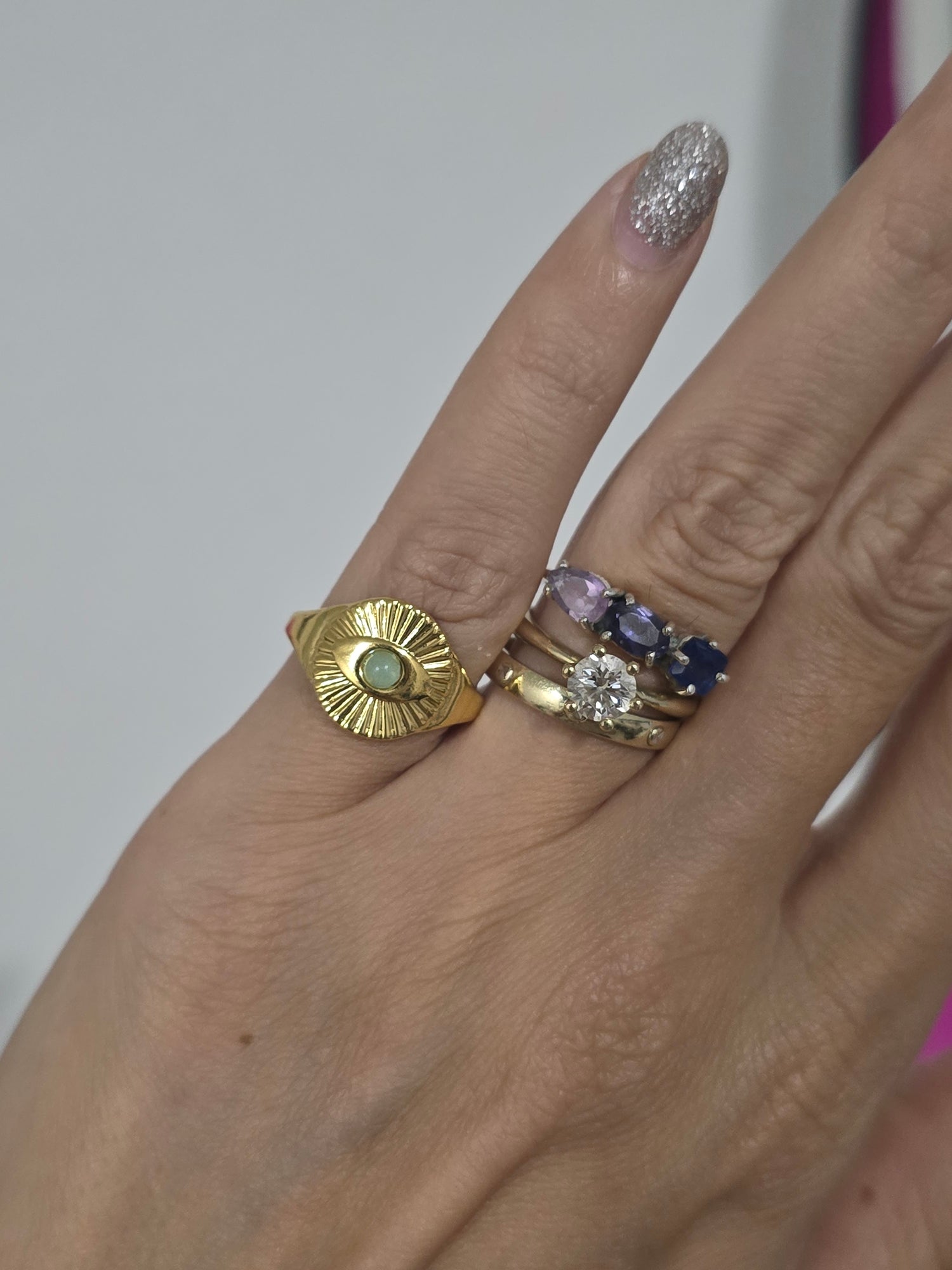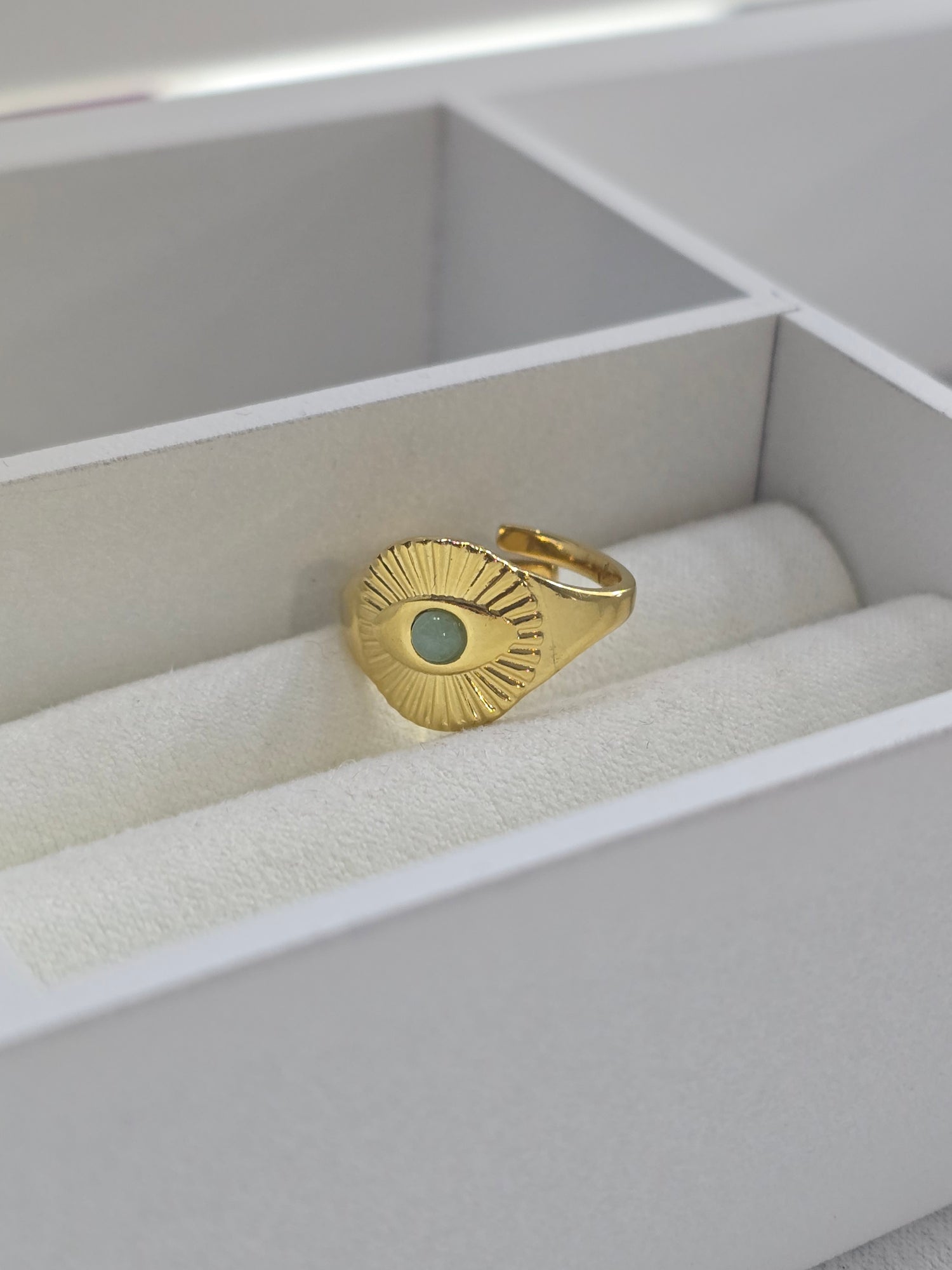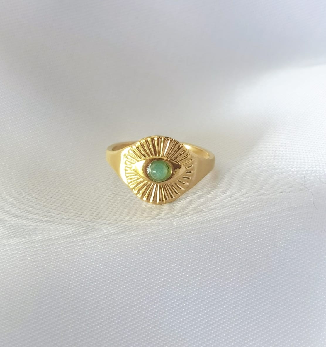 El anillo que traerá fortuna a tu vida, los ojos son un amuleto contra el o"mal de ojo" y limpia las malas vibras cercanas a ti, aparte de que se ven mega cool con su piedra ágata de pupila para limpiar auras .