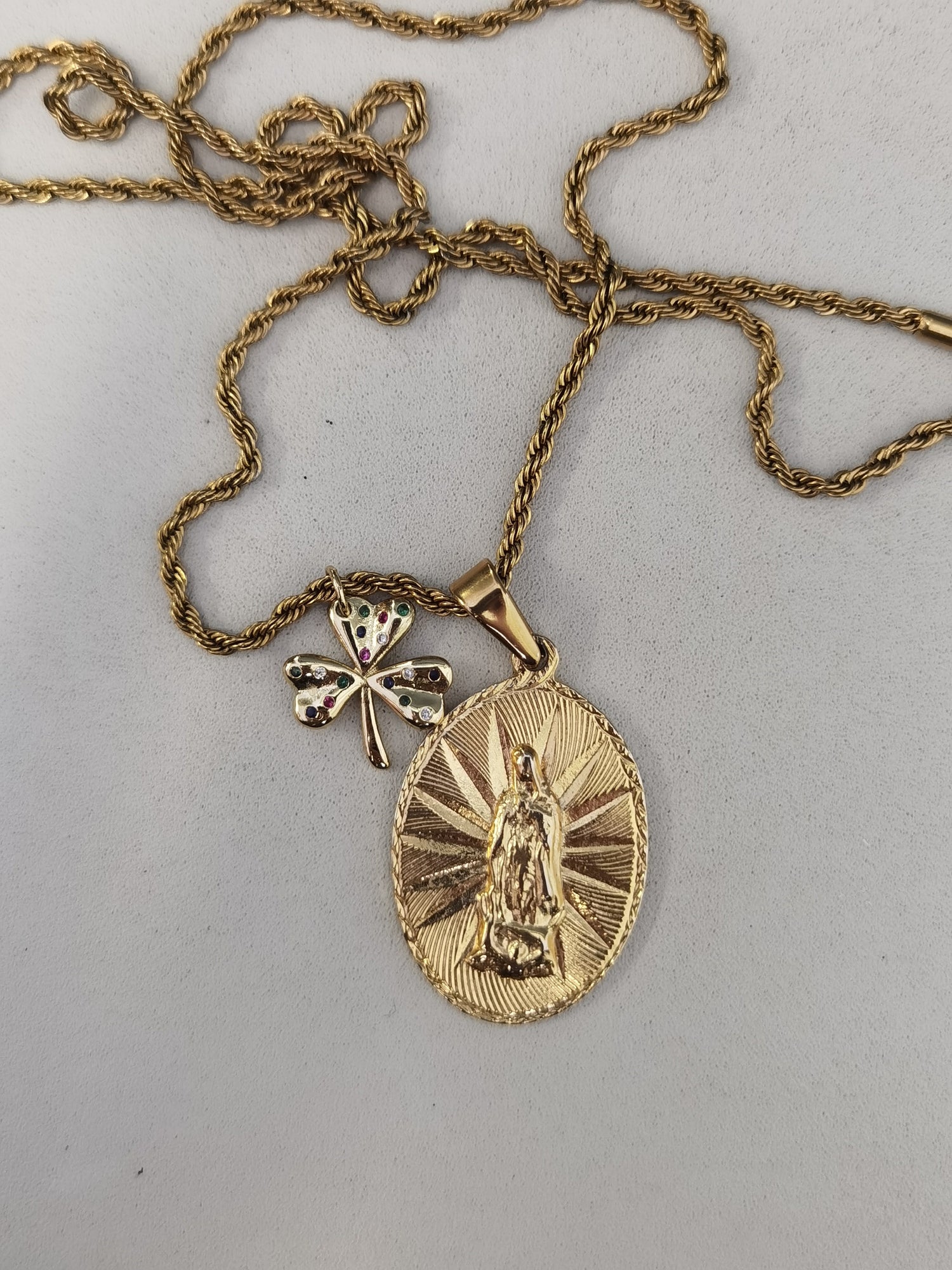 Así o más protegida ?? La unión de esta hermosa medalla de Virgencita con el trébol de la suerte serán un amuleto ideal para tu protección ,aparte de que se ve hermoso usándolo solo o con más collares , ya te fijaste en más aplicaciones de zirconias de colores en el trébol??? Se ven AMAAAZING!!