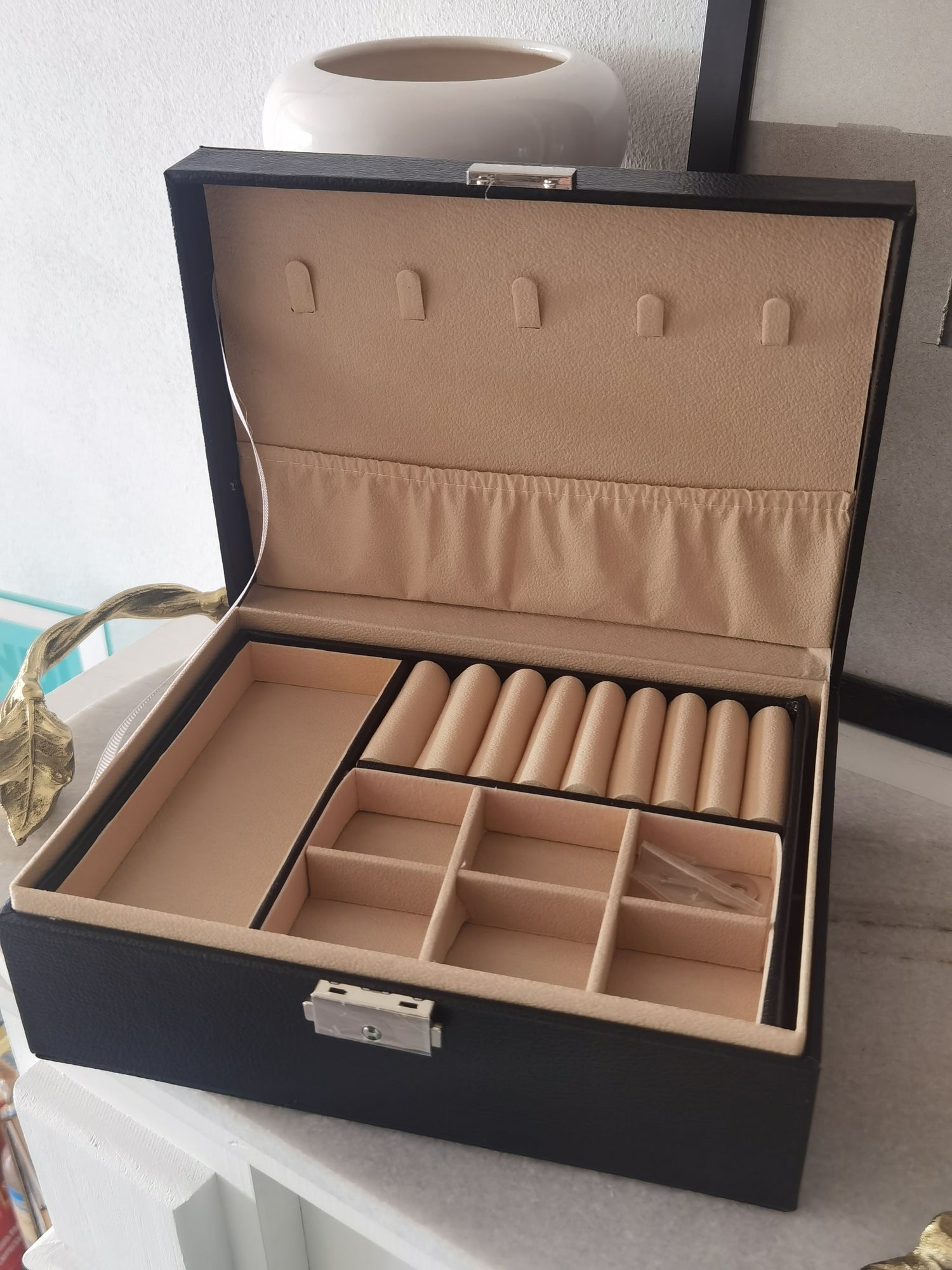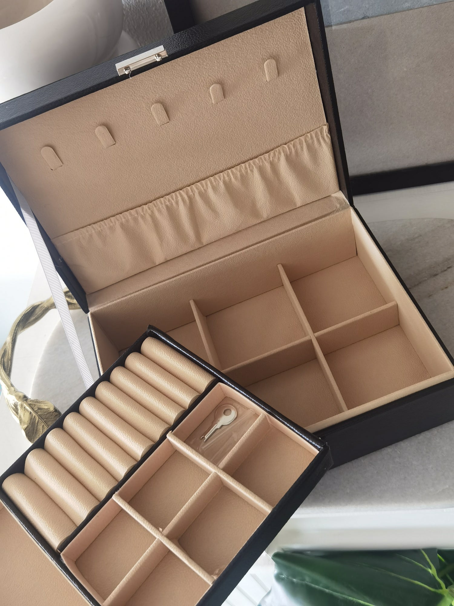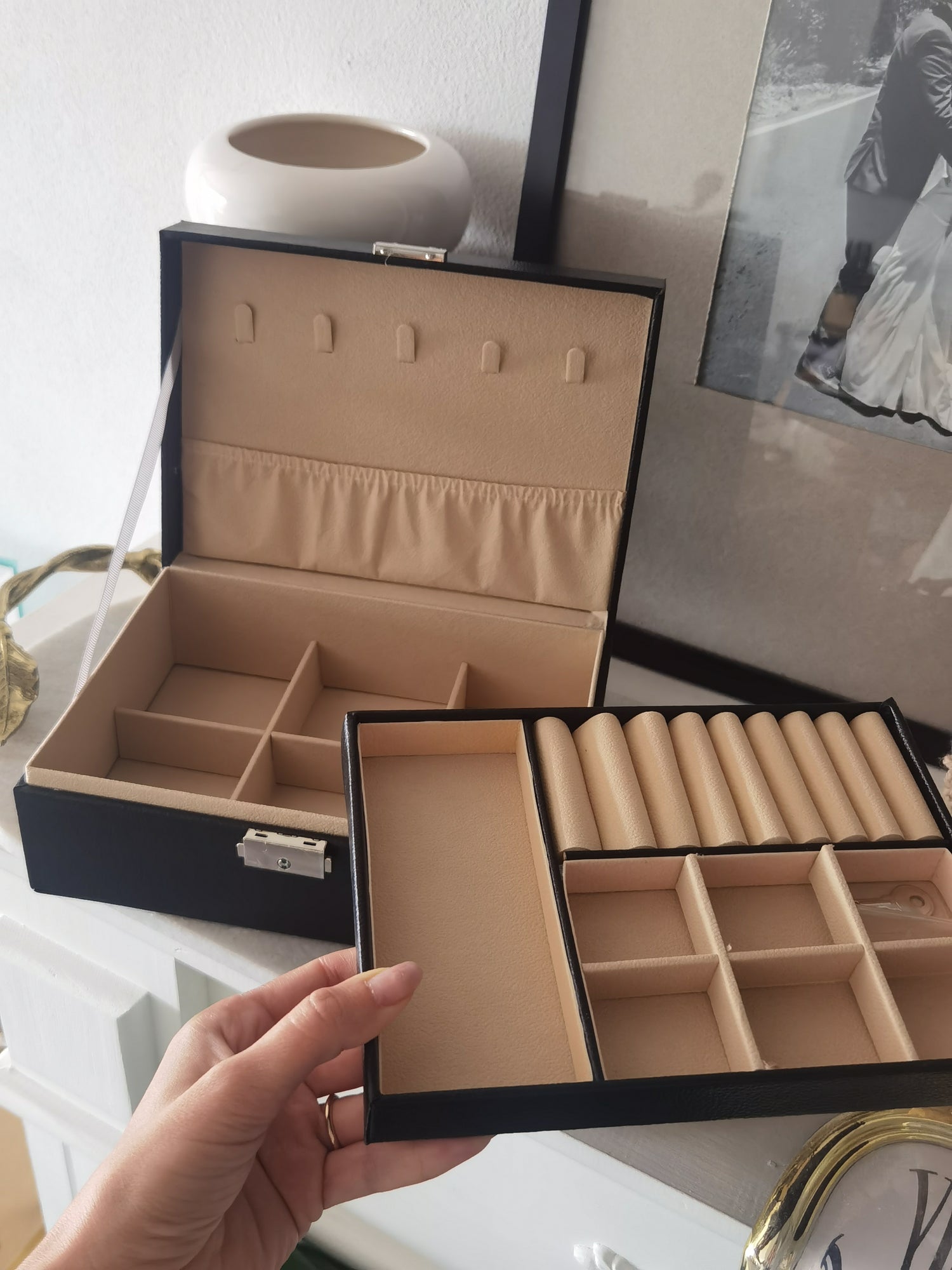 Cuenta con una charola divisoria para que puedas guardar tus relojes o joyas más grandes en la parte de abajo 🙌🏻