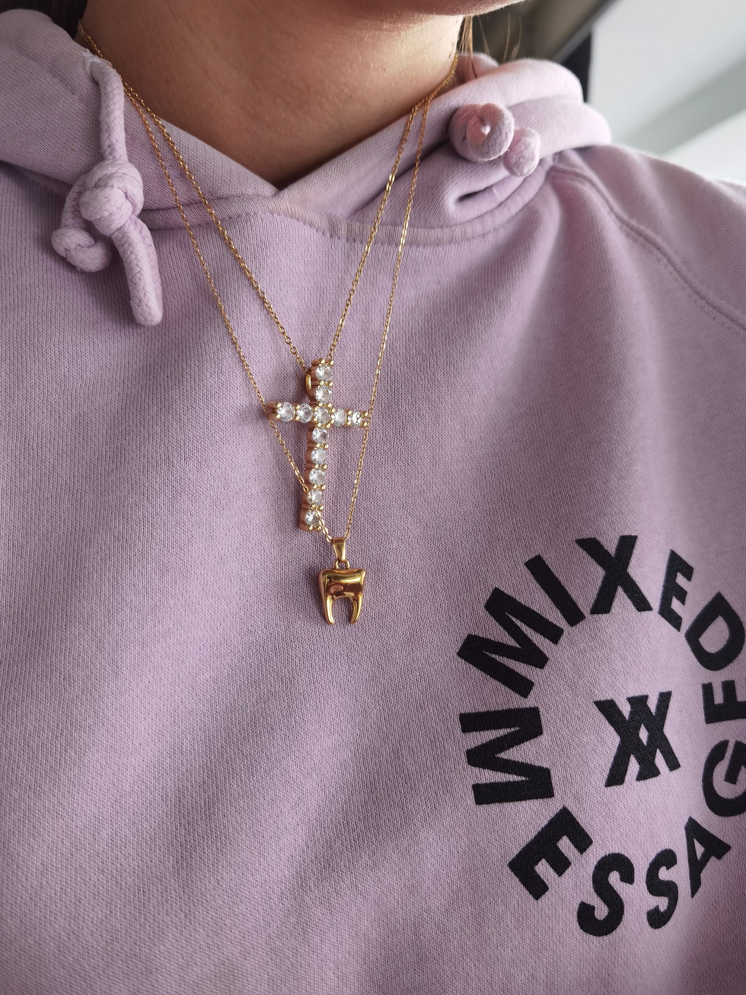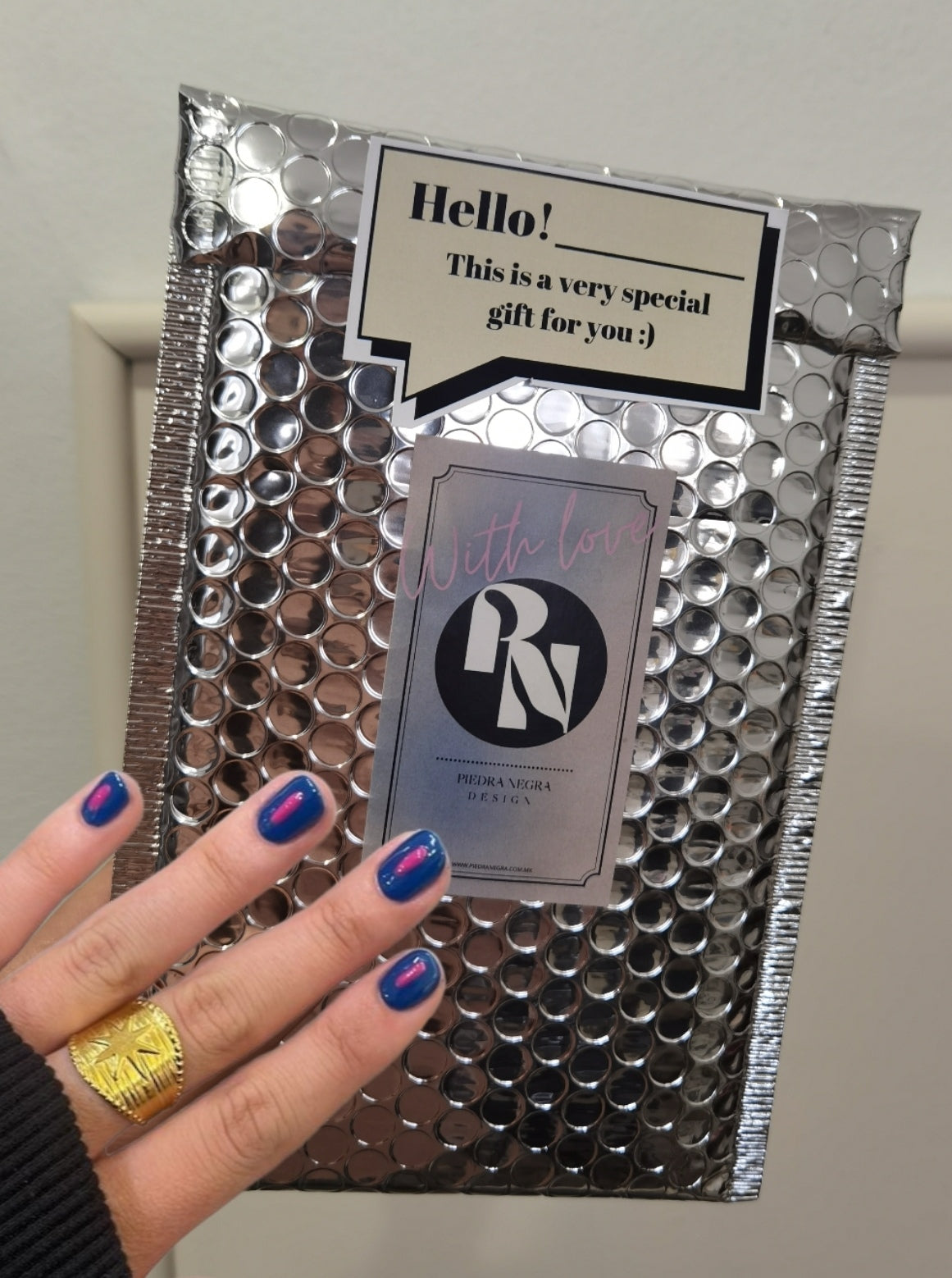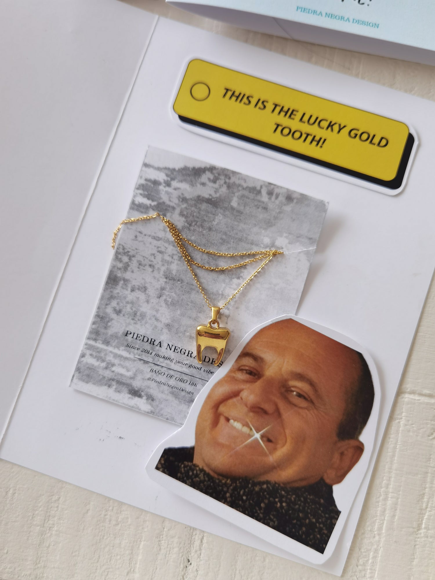 Kit de tarjeta con collar diente de la suerte, agrégale un mensaje lindo a tu persona favorita y despreocúpate por la envoltura porque te incluye sobre plateado Gratis 🤩