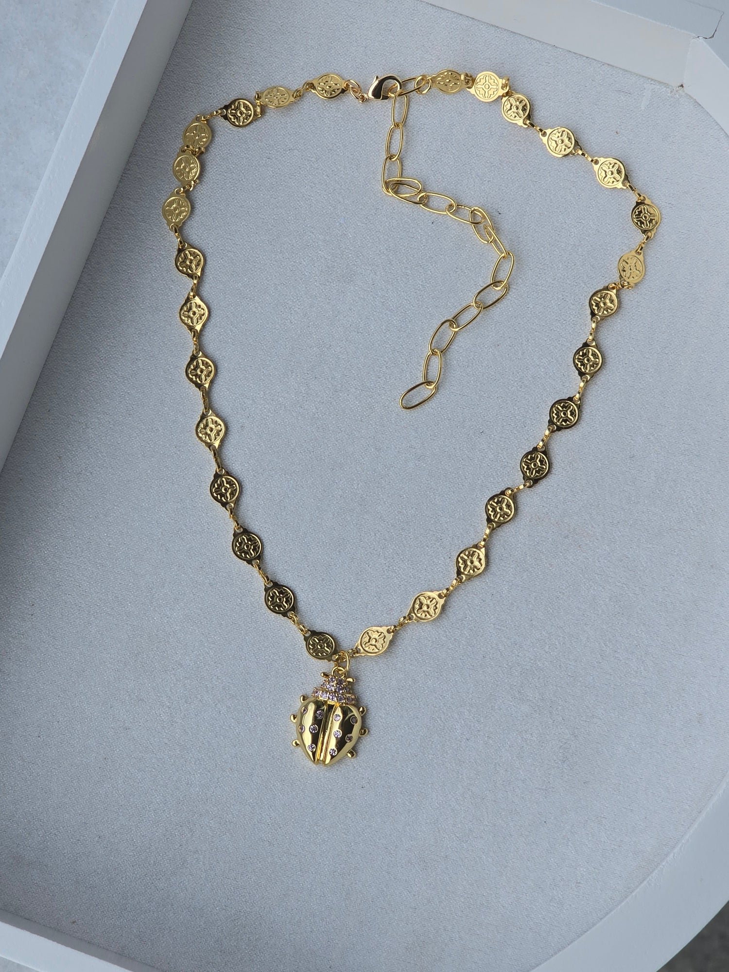 Gargantilla de lunares con la catarina más hermosa del condado, que te recordará a que no importa que tan pesada sea la carga , abre tus alitas y llegarás lejos ! La suerte está contigo :)