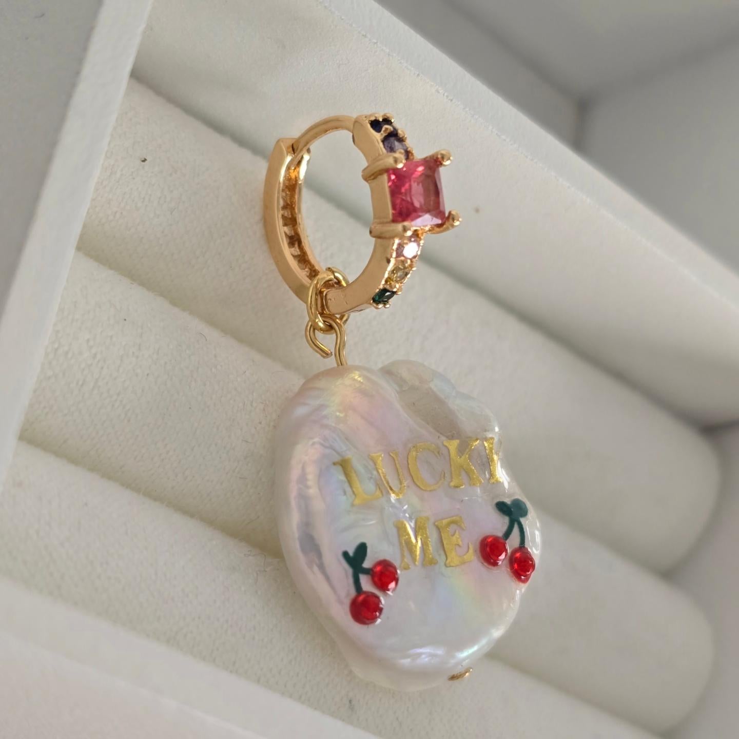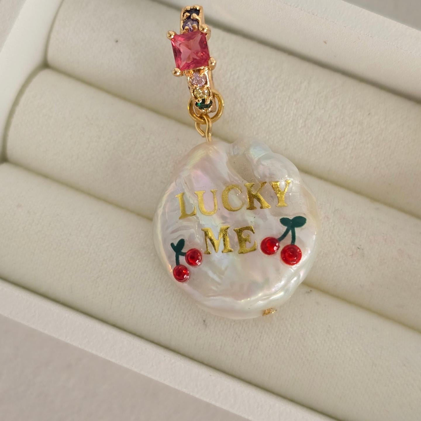 Charm individual de perla calabazon intervenida con iniciales doradas y cerezas 🍒