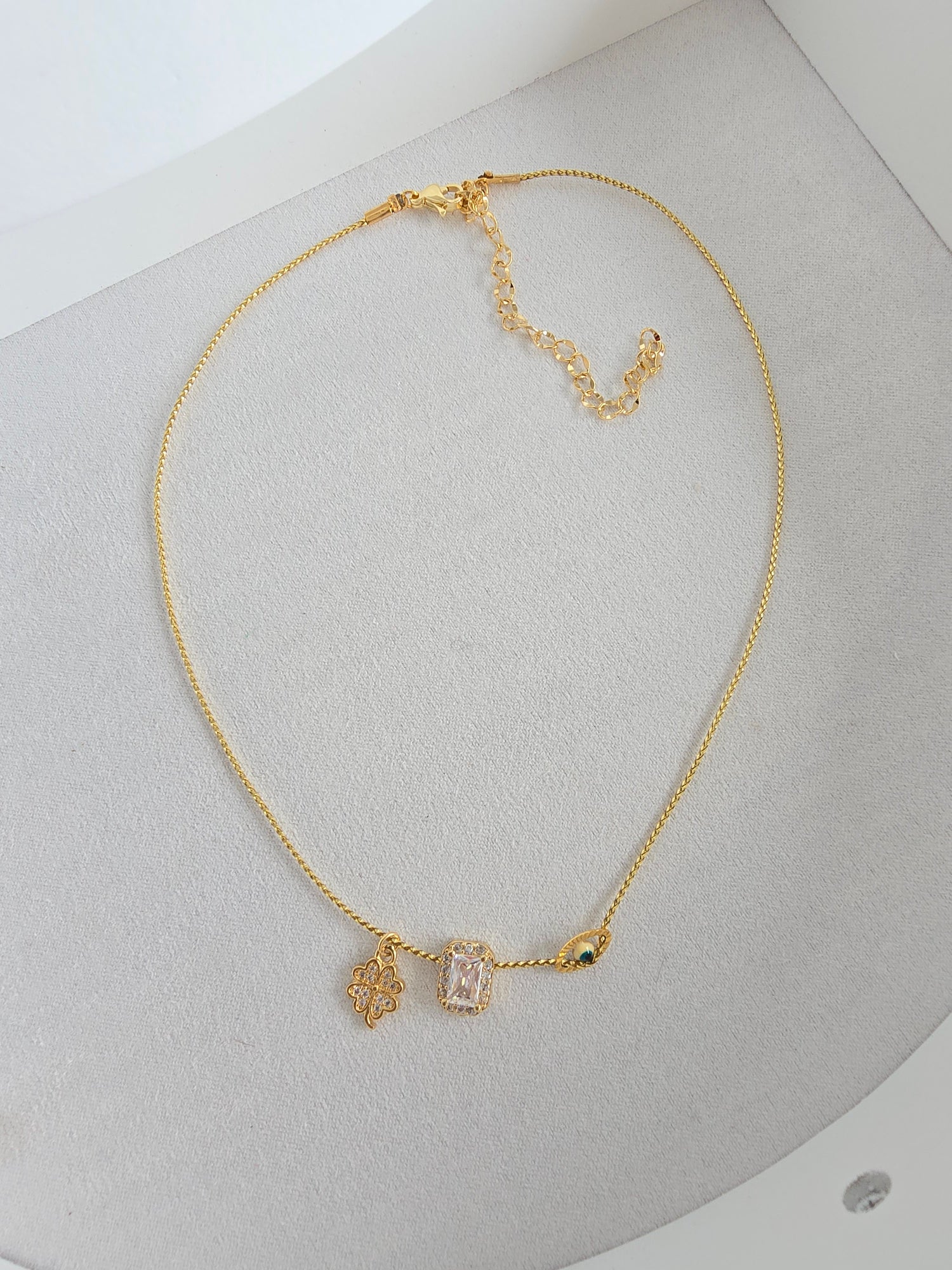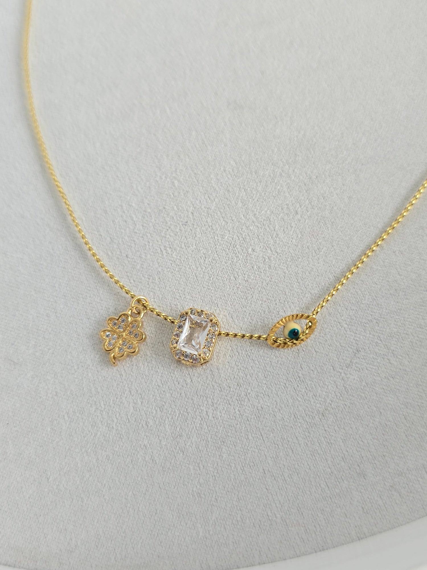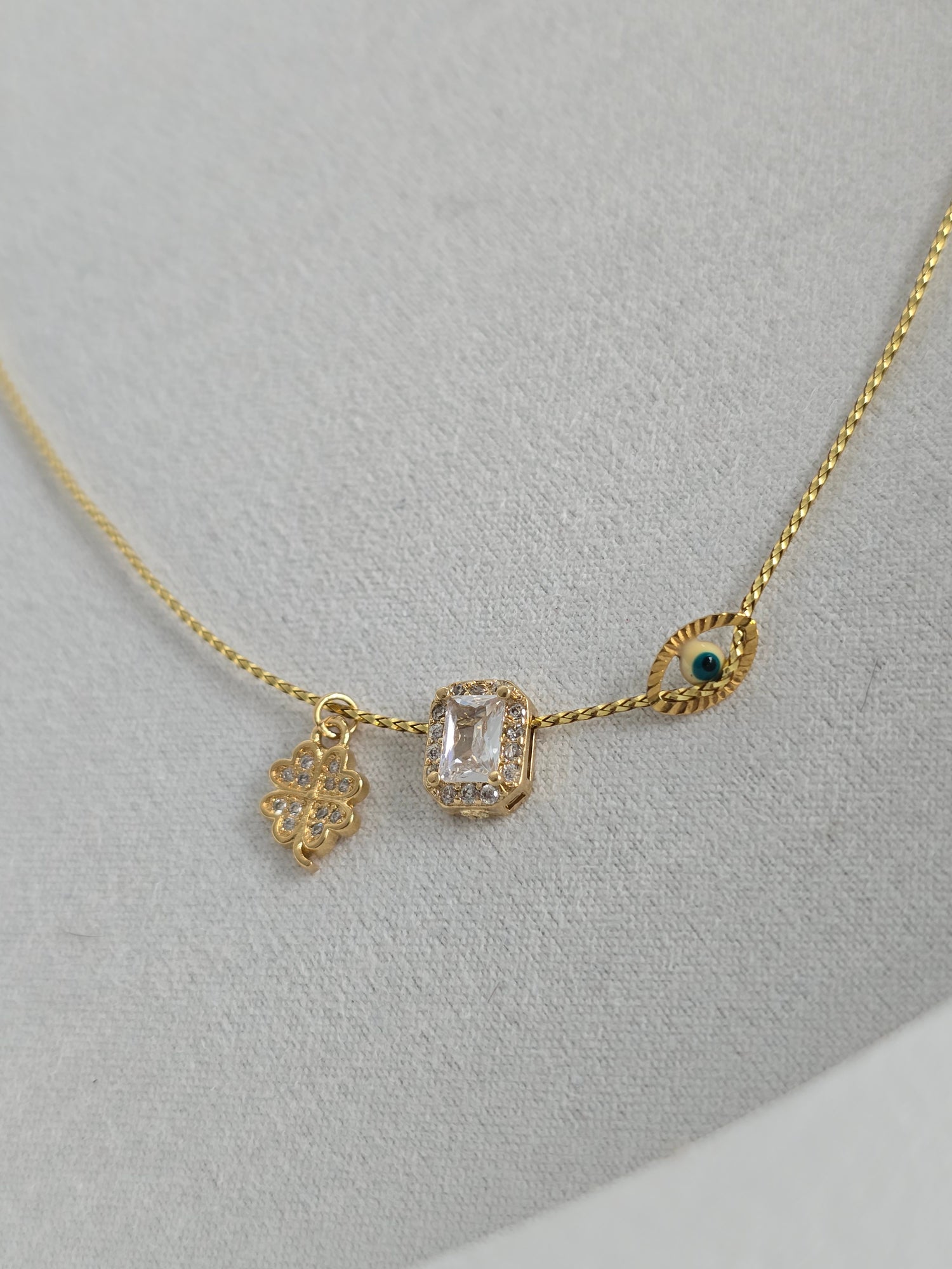 Collar de hilo dorado con mini charms de la suerte , ideal para usarlo todo el tiempo y combinarlo con rus collares favoritos (o usarlo solito, porque sus mini charms hacen que sea una joyita diiiivina 😊)Â