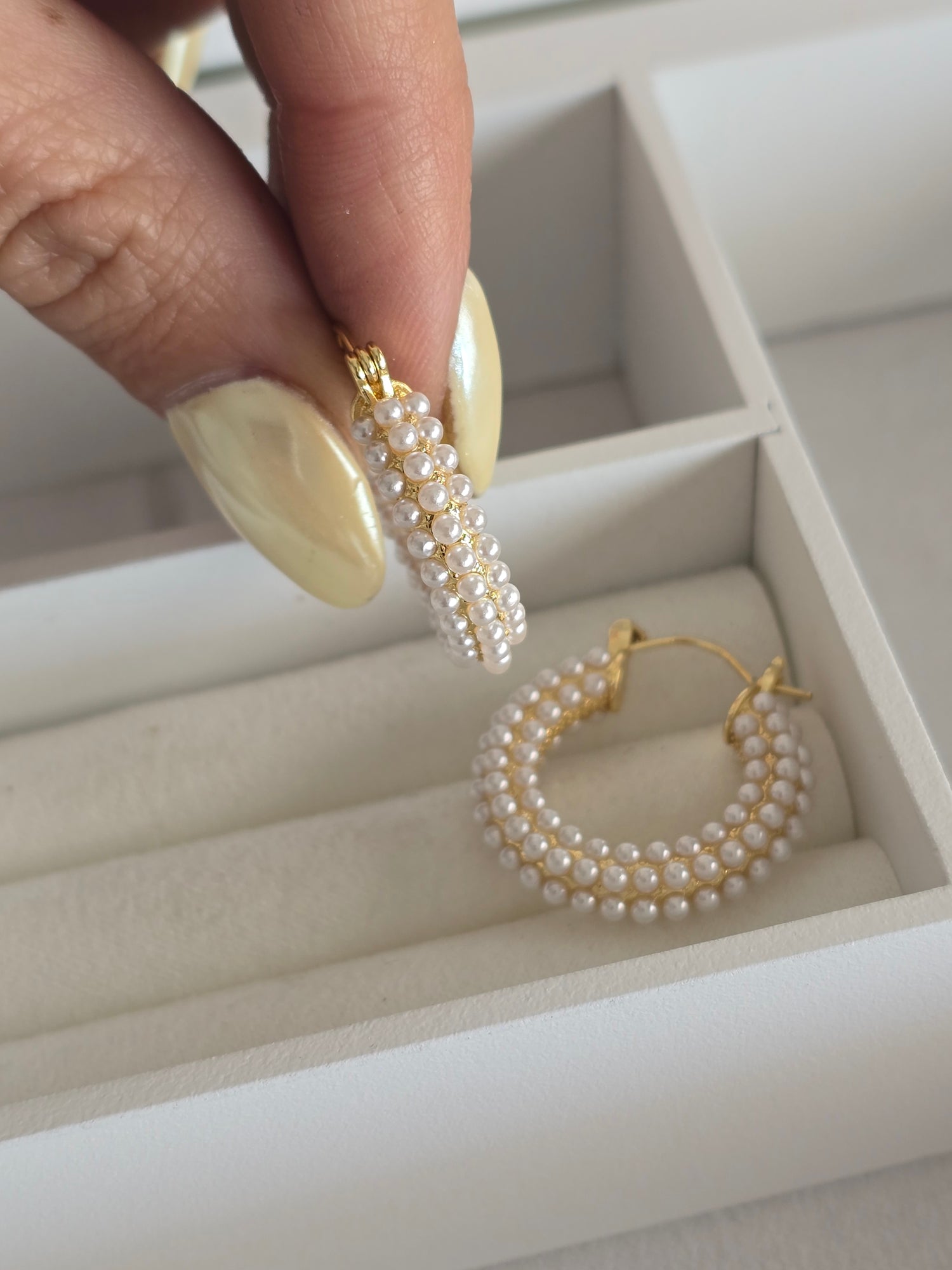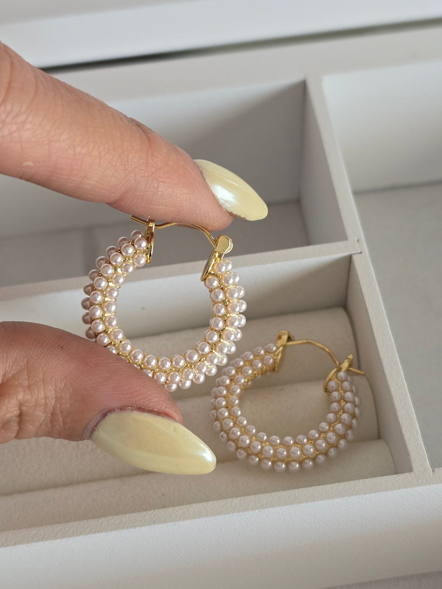 Cansada de las mismas arracadas de siempre ? Te presento este paresito con mini perlitas blancas que le darán ese toque romántico y cool a tu outfit 😎
