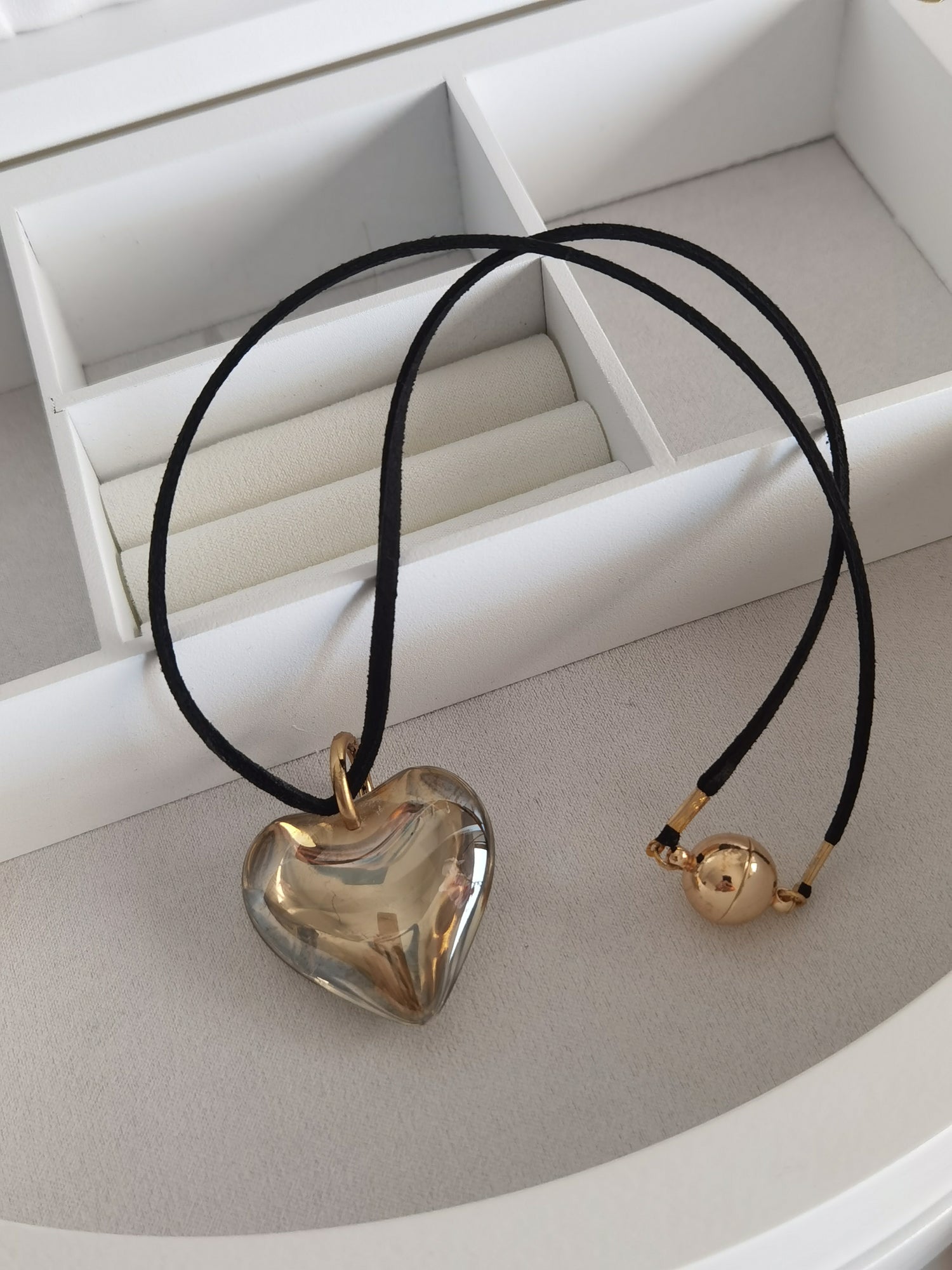 Gargantilla de gamuza negra con corazón de cristal y broche de imán (lo más agusto del mundo porque te lo pones y quitas en medio segundo , el imán es muy fuerte así que no se abrirá solito) ideal para hacer remate visual en tu outfit y verte muy "coquetteeeee"