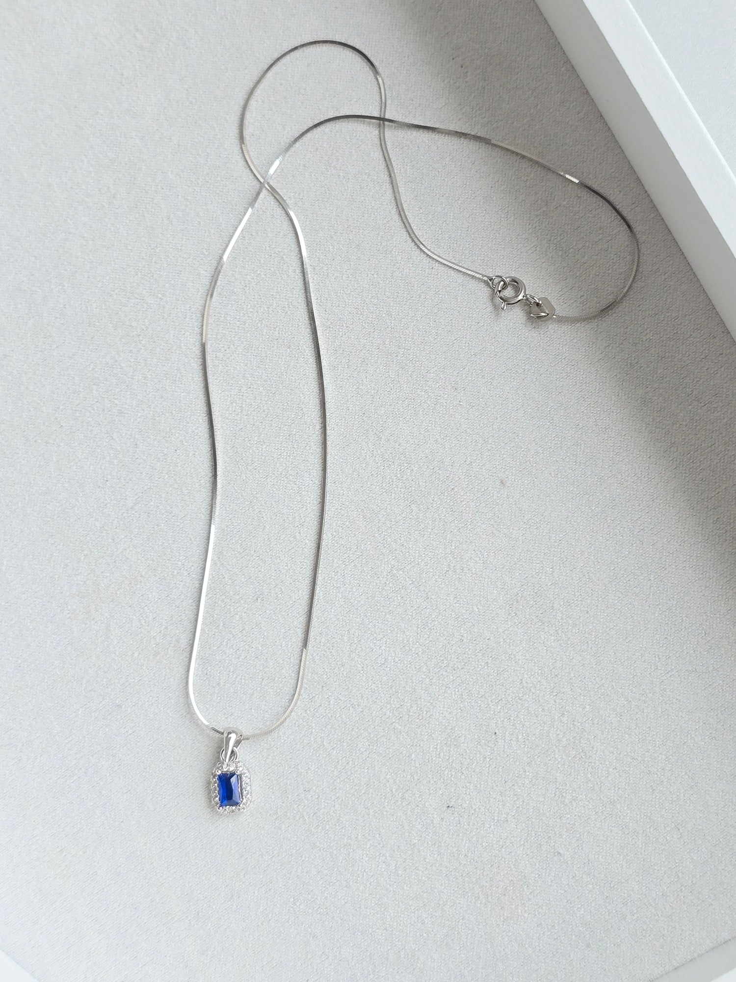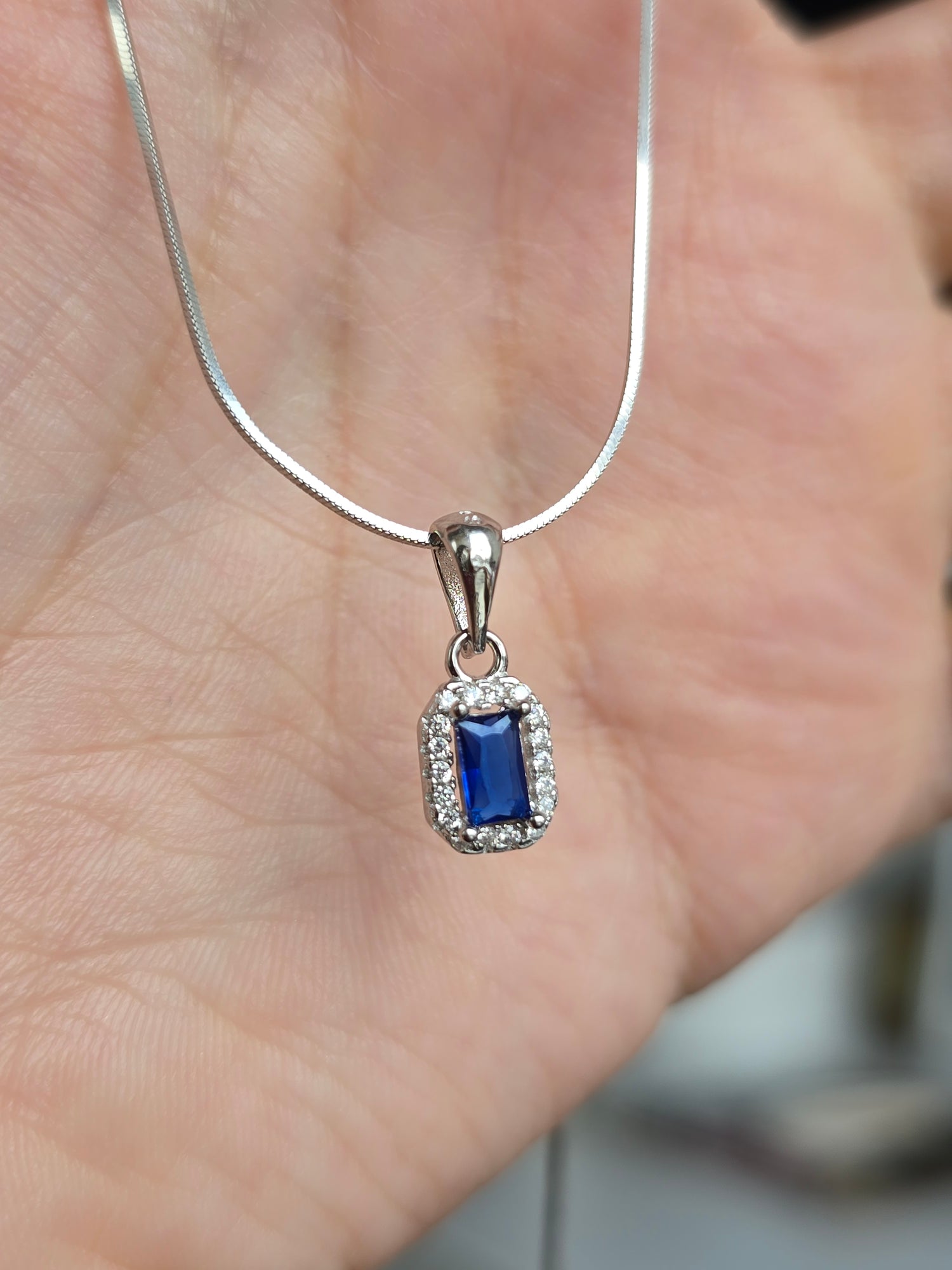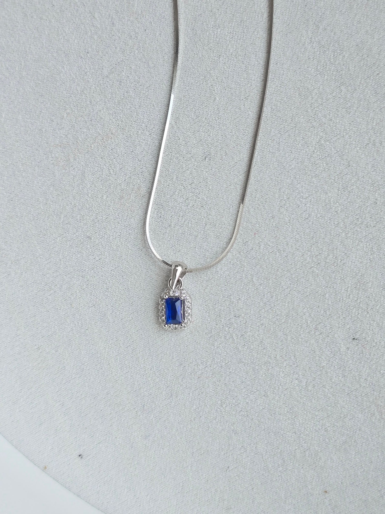 Gargantilla de plata y piedrita azul zafiro con zirconias blancas , ideal para el diario !