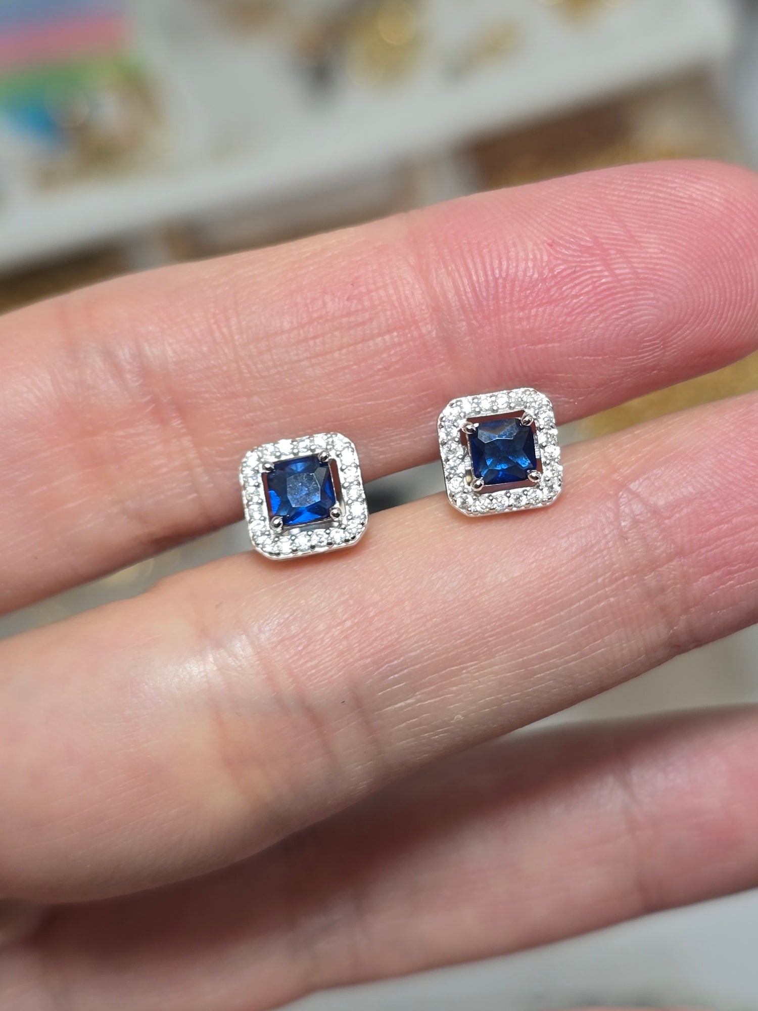 Par de aretes con piedra azul que te van a robar tu corazón y no vas a querer usar otros nunca más en la vida ... y si es así NO IMPORTA porque son de plata y te van a durar para siempre :)