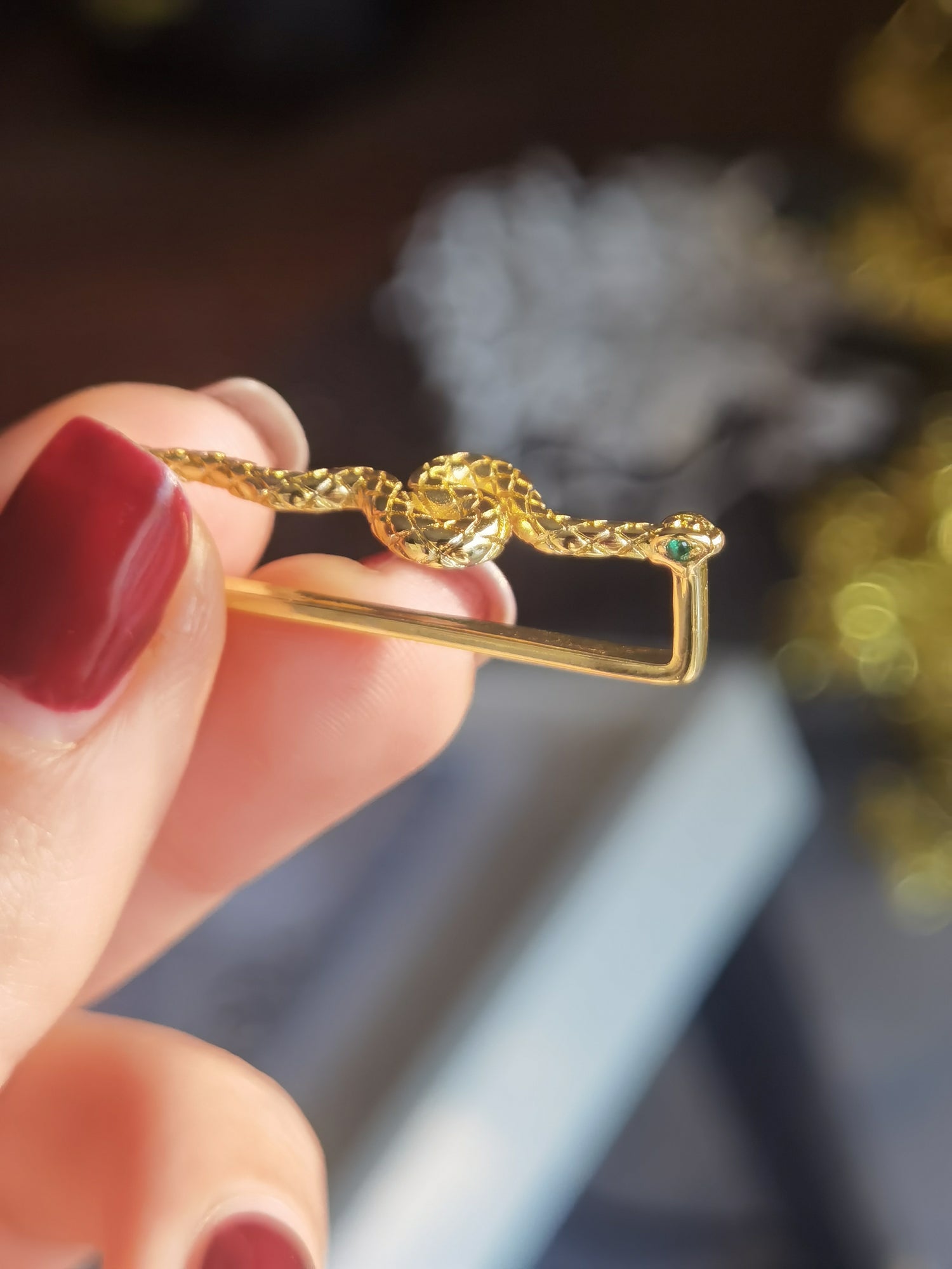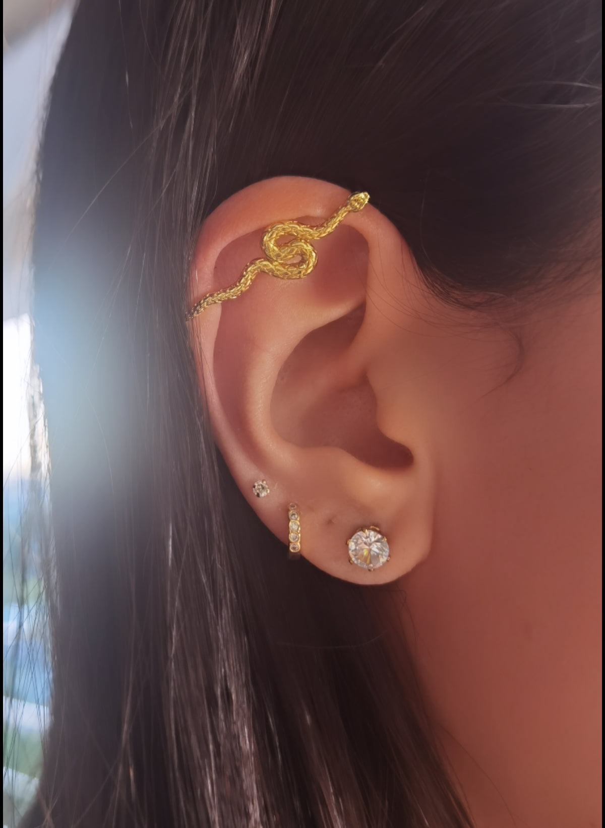Simulador de arete de serpiente con los ojos de zirconia esmeraldas más hermosas del condadoooo, completa tu ear party con los aretes más sofisticados de PN!