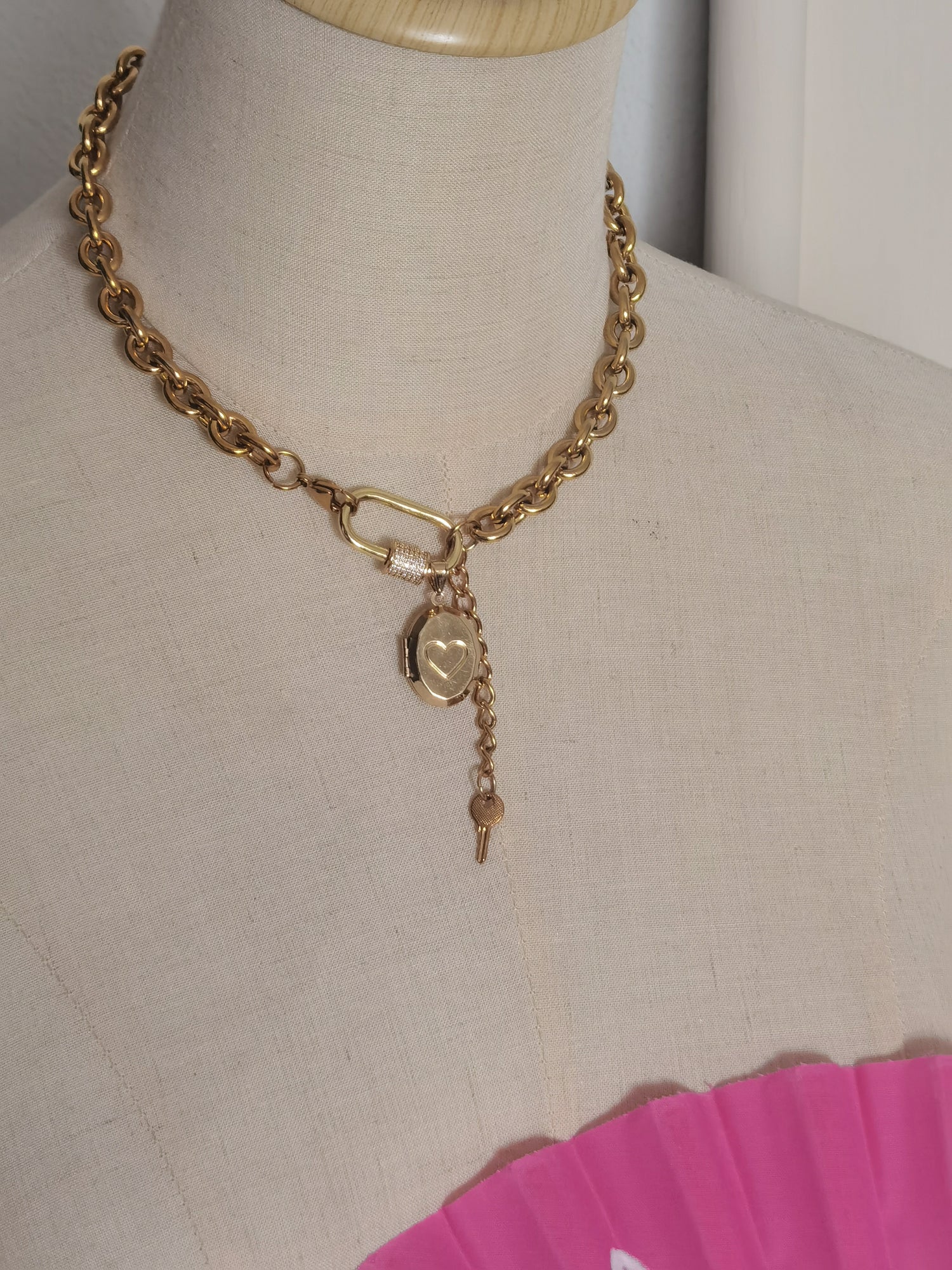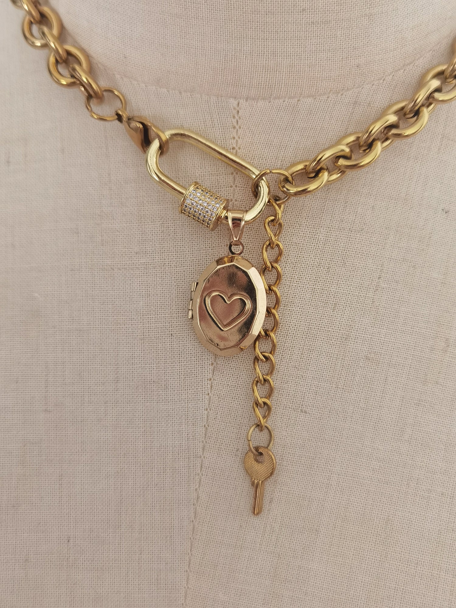 Gargantilla chunky con relicario de corazón que puedes poner o quitar dependiendo tu "mood" , así que si no te quieres ver tan romanticona algún día DONT WORRY se lo puedes quitar y se convierte en un collar chunky super cool !