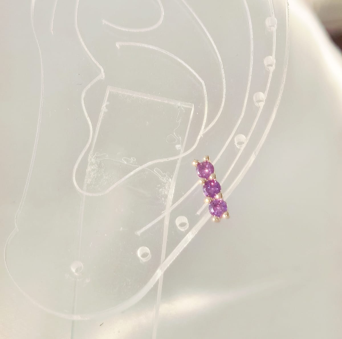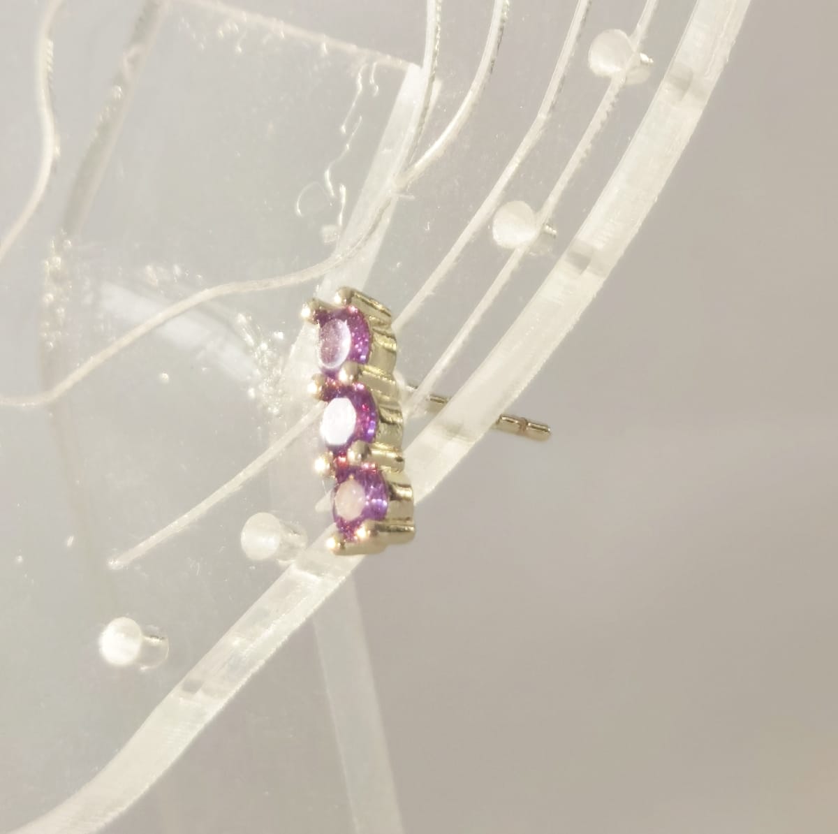 Barra de 3 zirconias moradas , úsalo solito o acompañado.