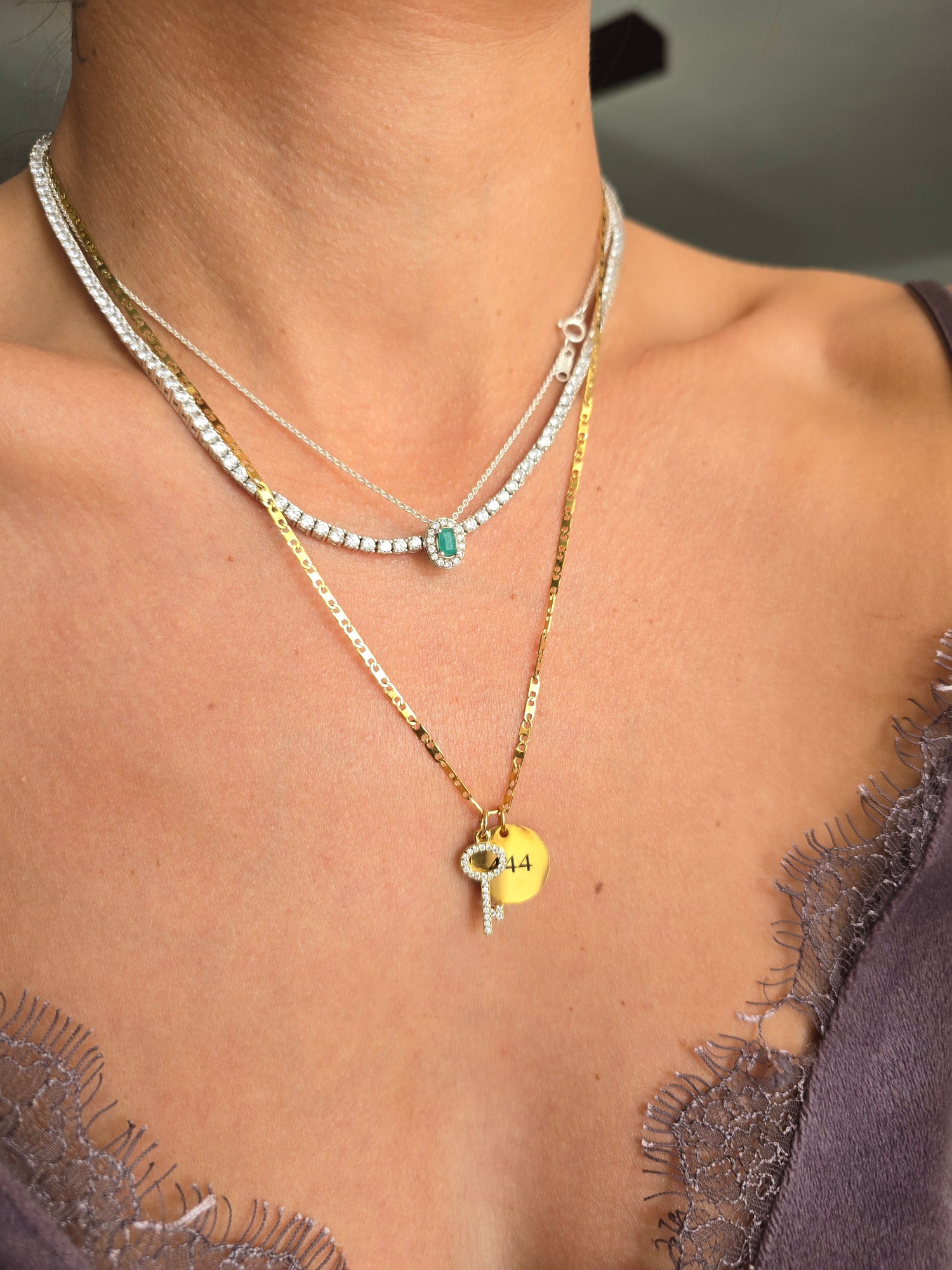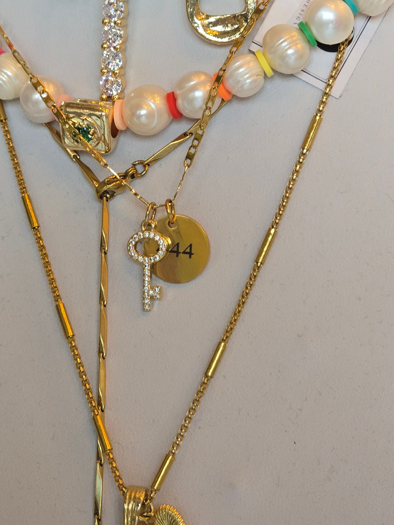 Collar con llave de zirconias y plaquita 444 que es un angel number , y significa que tus guías espirituales te están protegiendo que CONFÍES! :)