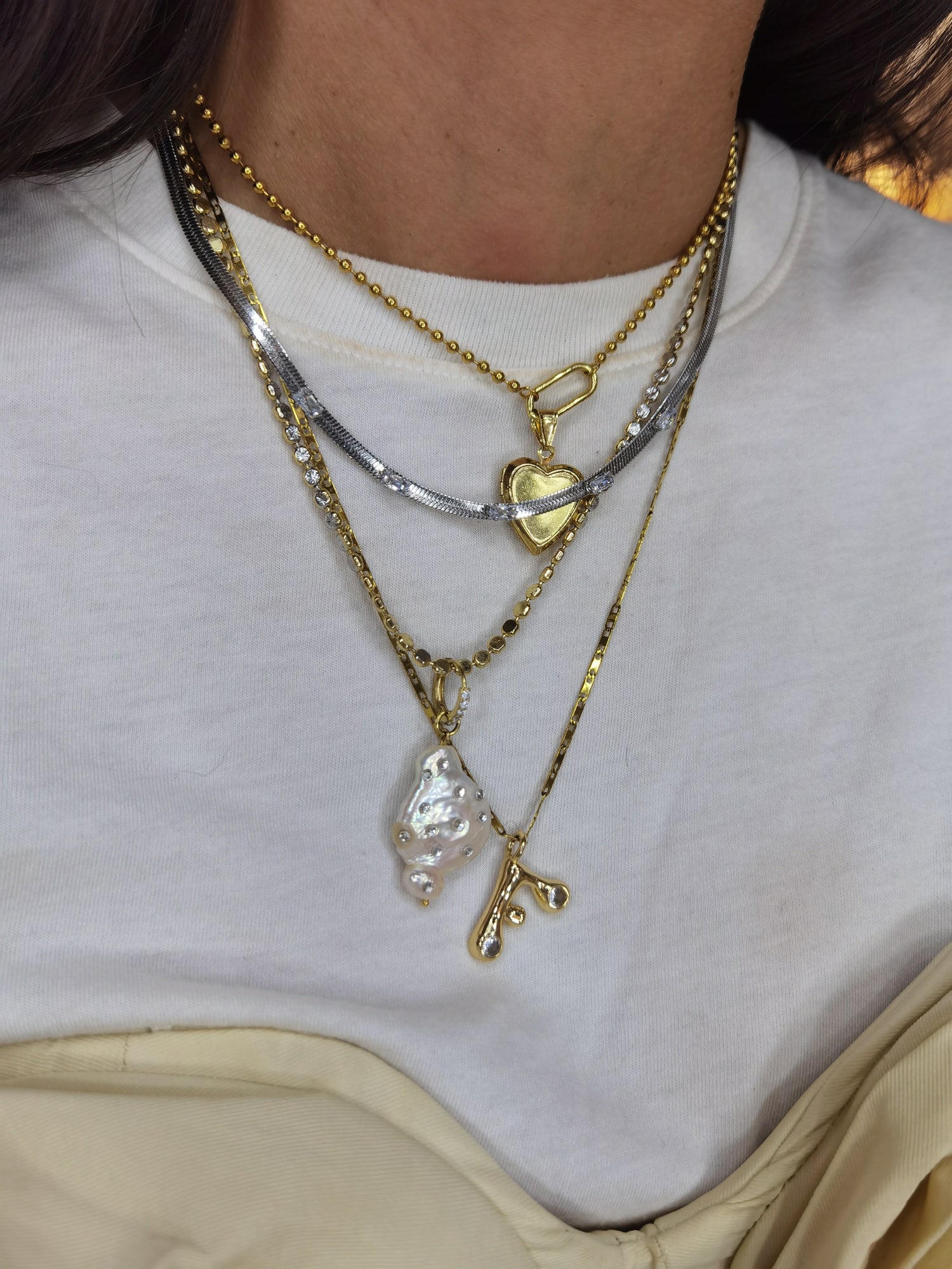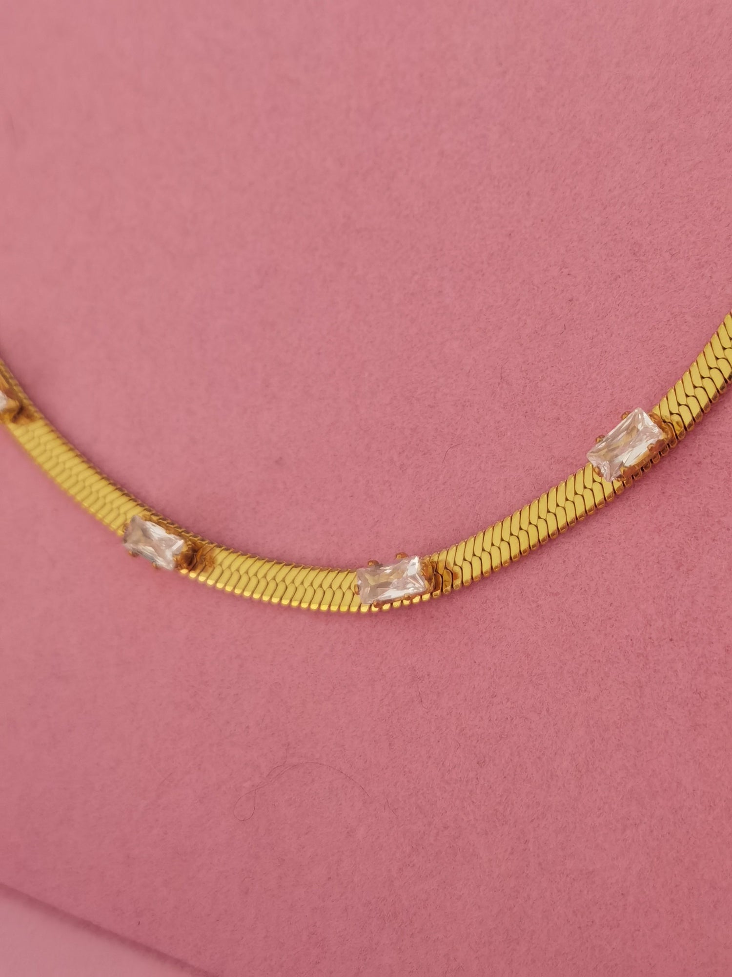 Gargantilla planchada con incrustaciones de zirconias rectangulares , ideal para crear un layering de muchos collares.