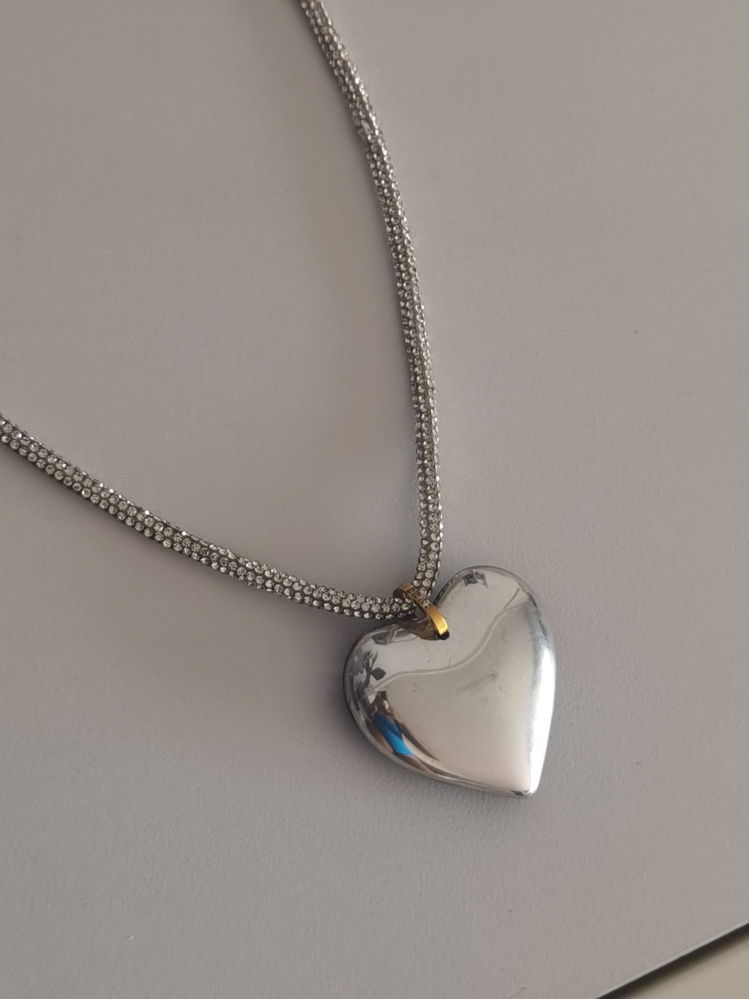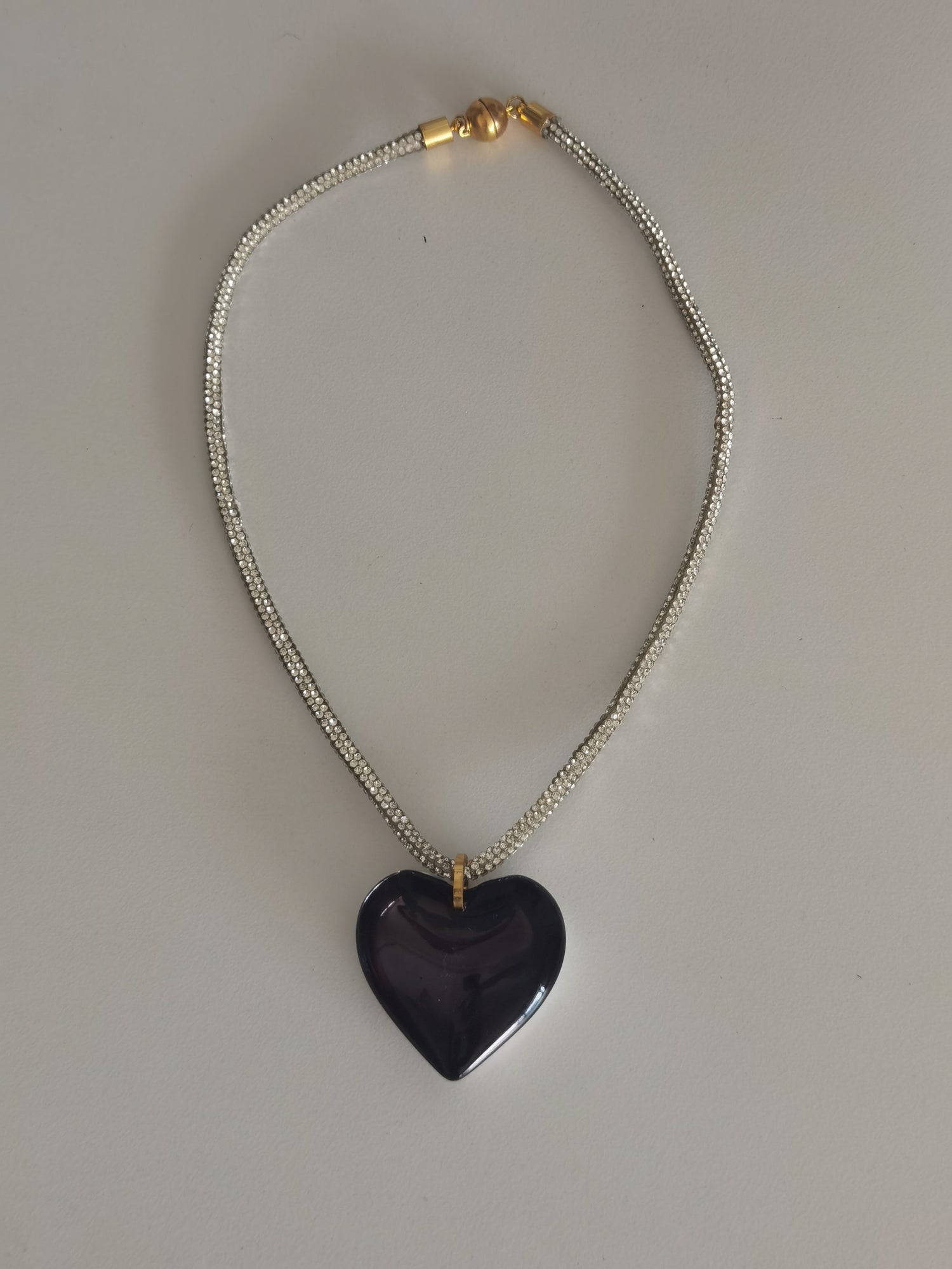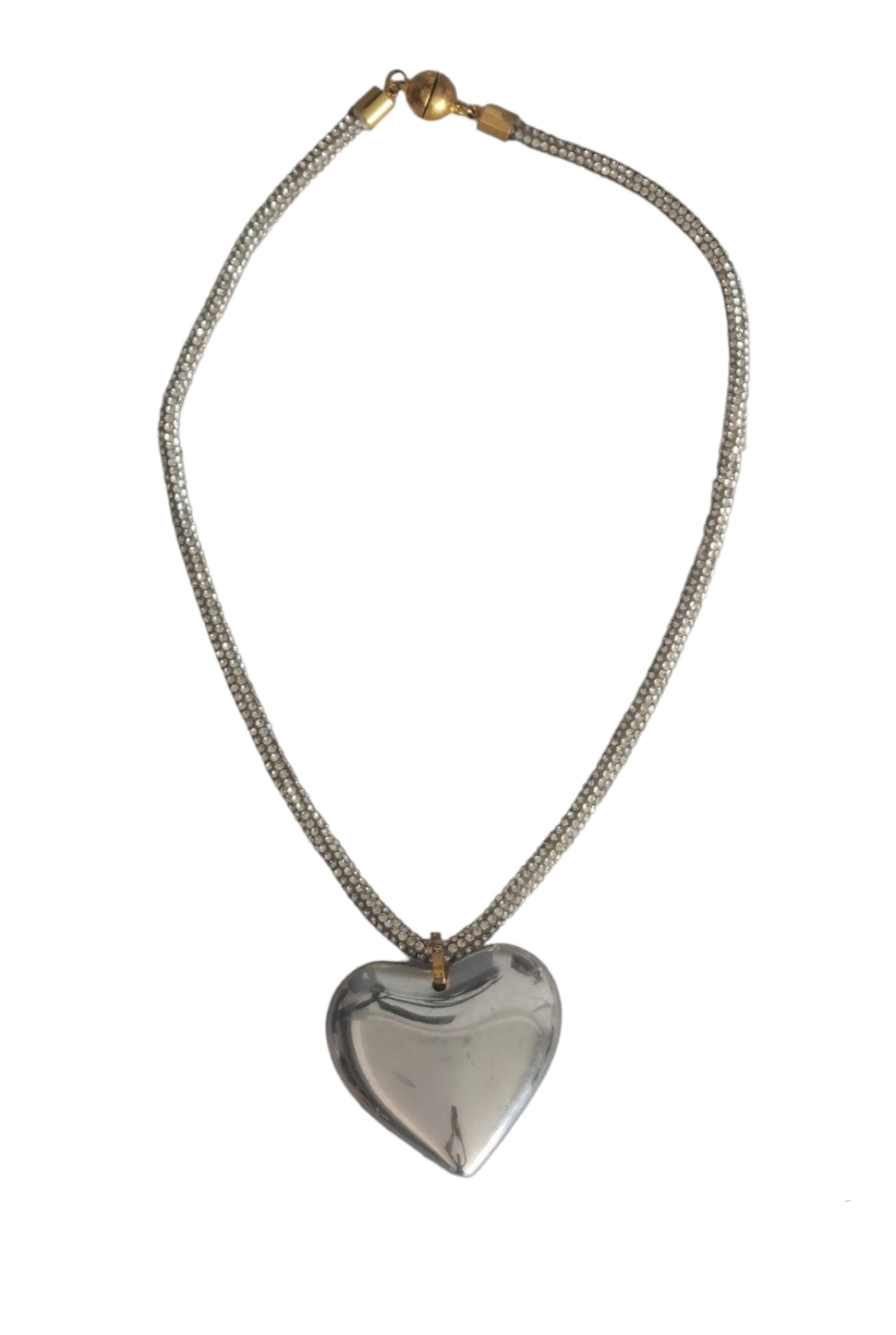 Collar de corazón de cristal tamaño XL con doble vista (plateado y negro ) que hará resaltar tu outfit en otro nivel 🤩 , si te gusta estar en tendencia entonces este bebesito tiene que ser tuyo !🔥🔥🔥