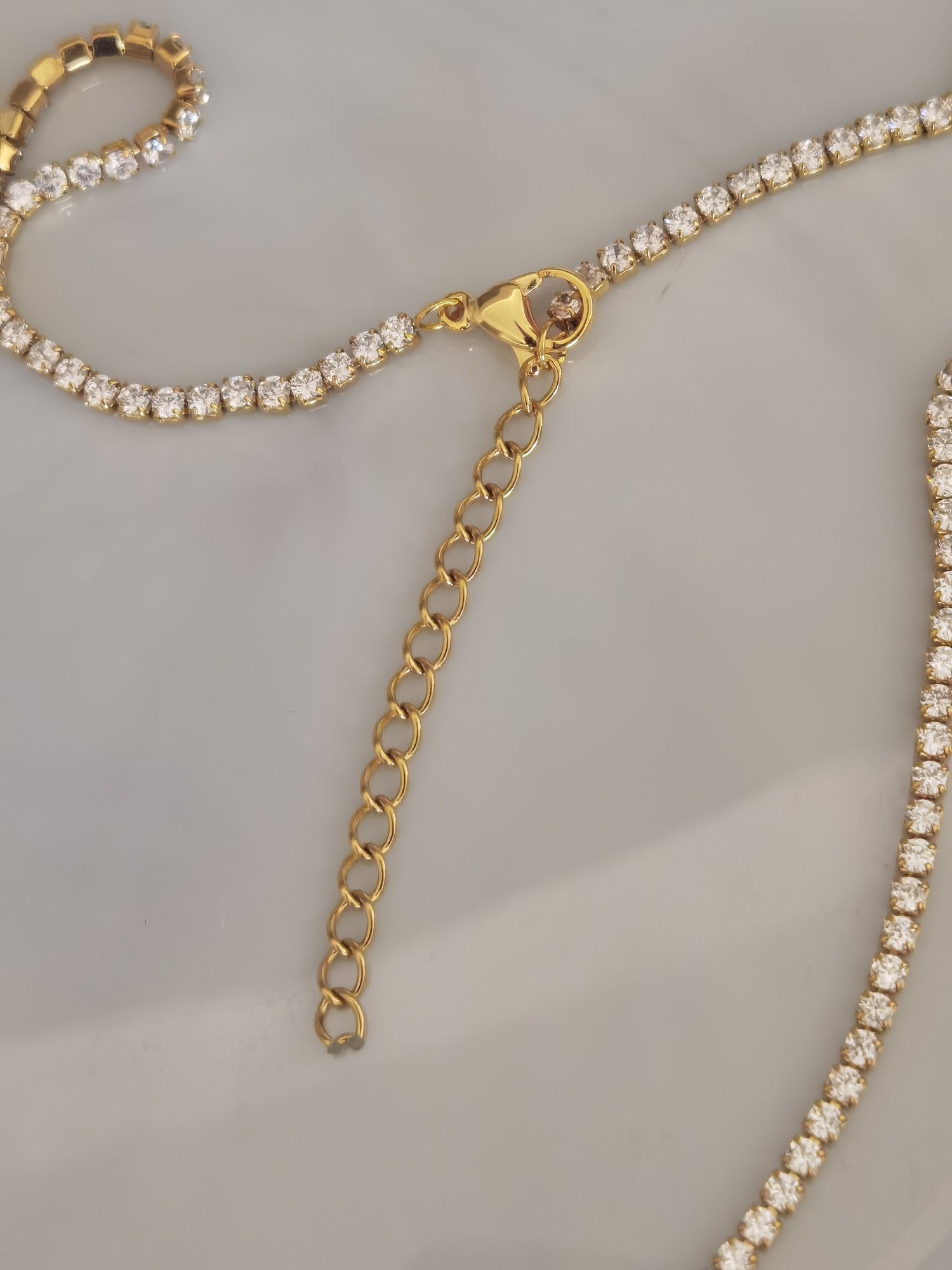 MATERIAL: acero inoxidable con baño de oro 18K y zirconias blancas