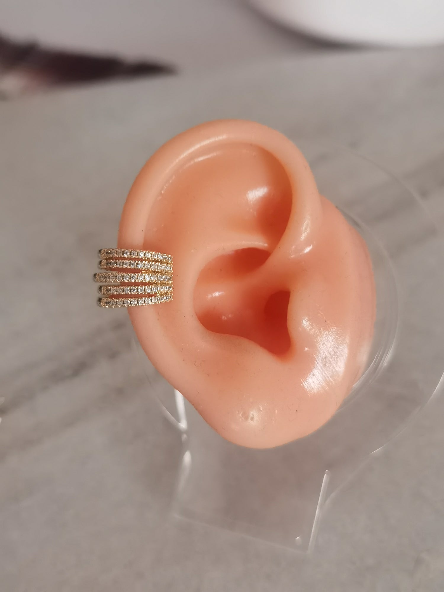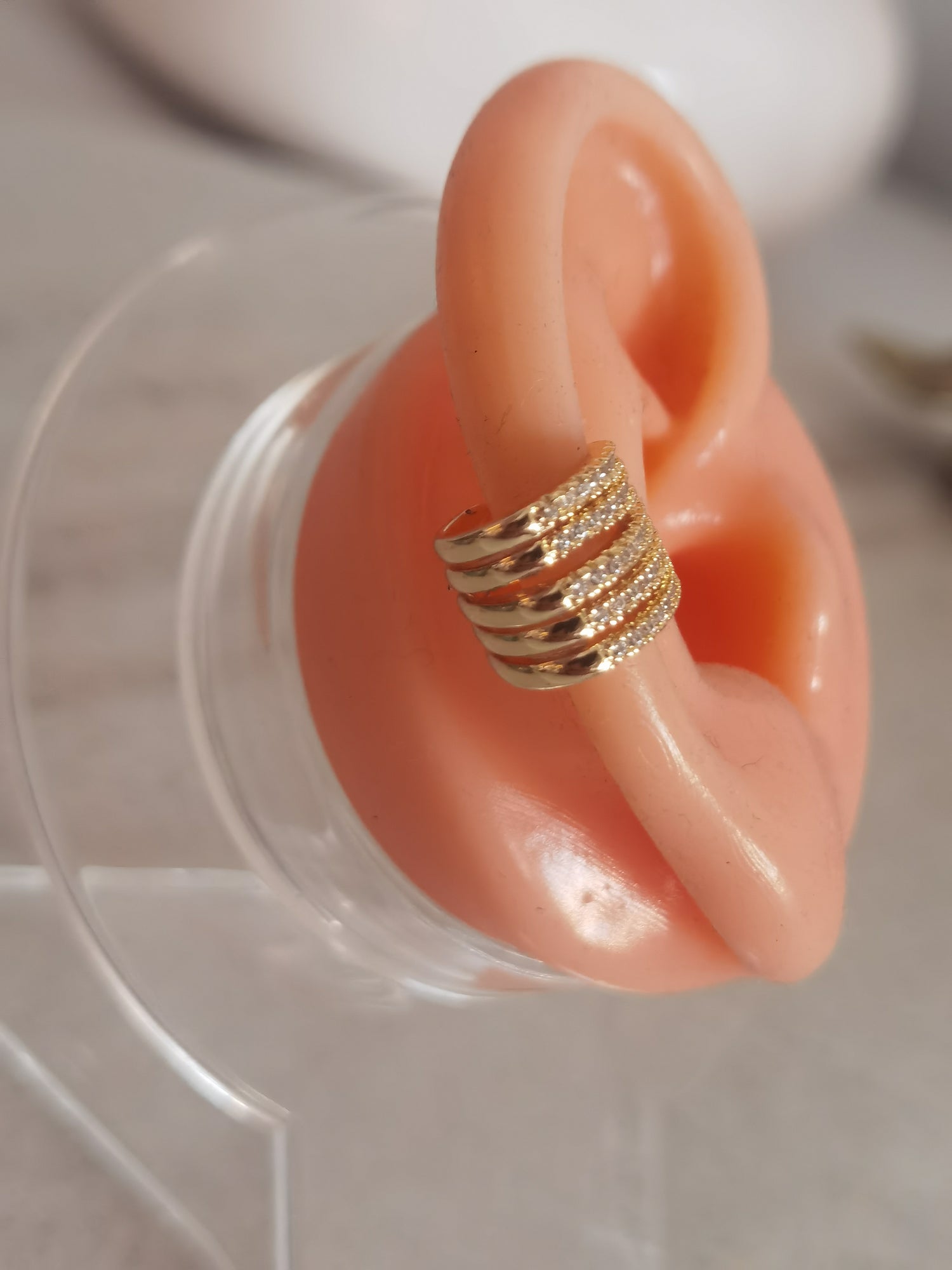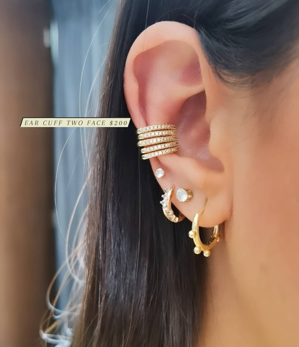 Increíble simulador de arete con 2 caras , úsalo con zirconias blancas para un looksito shinie o del lado liso dorado para un look más statment !