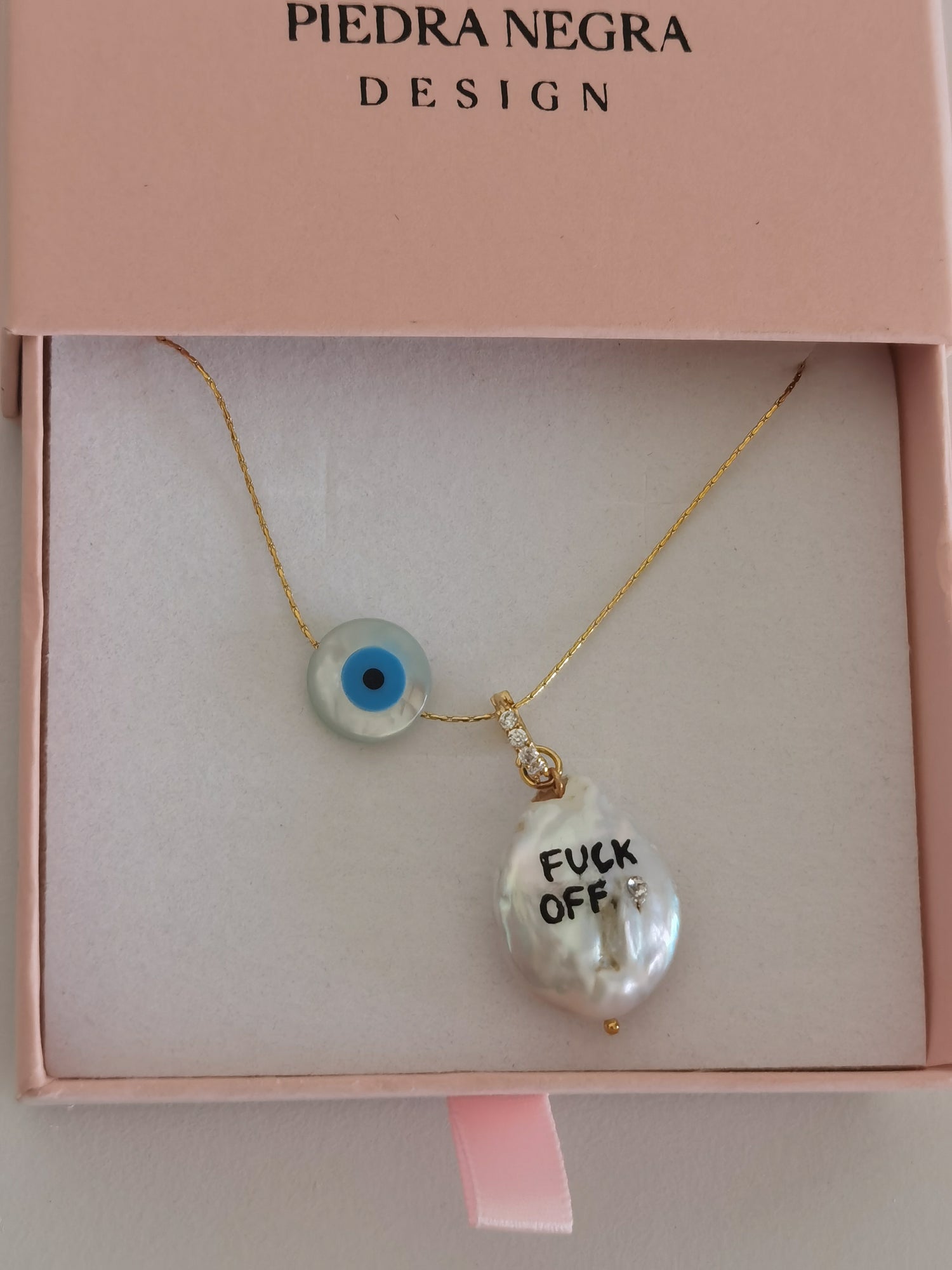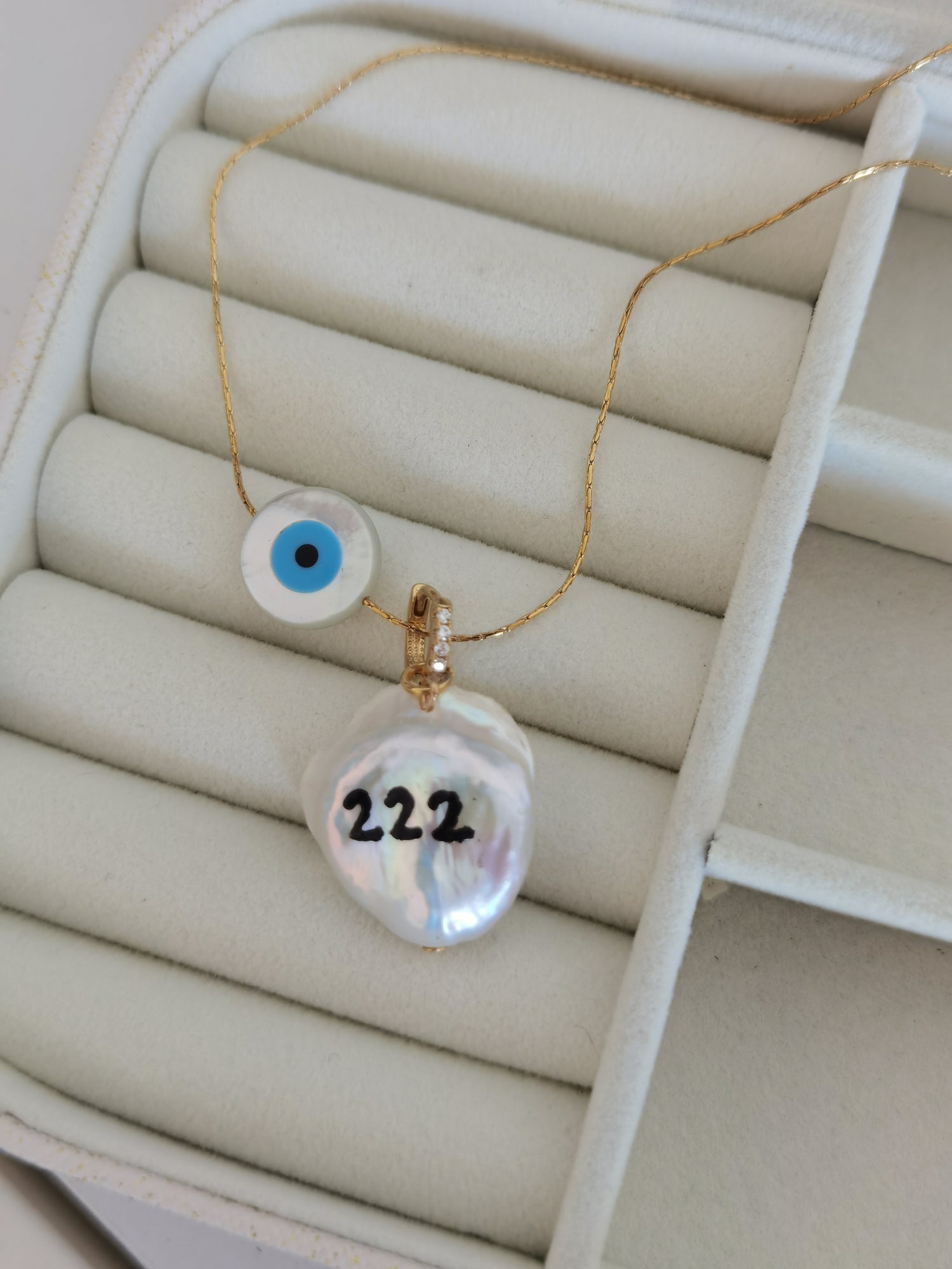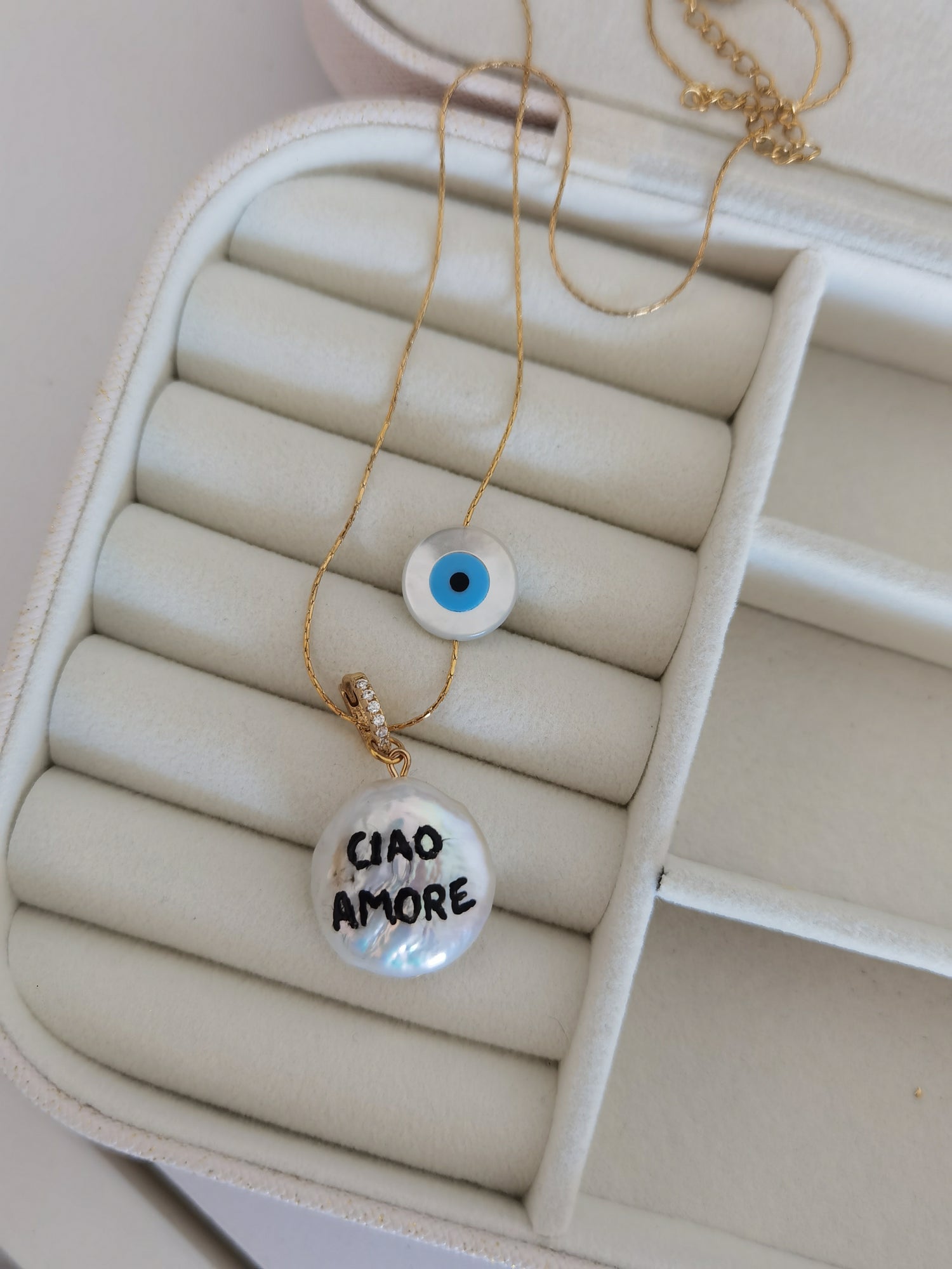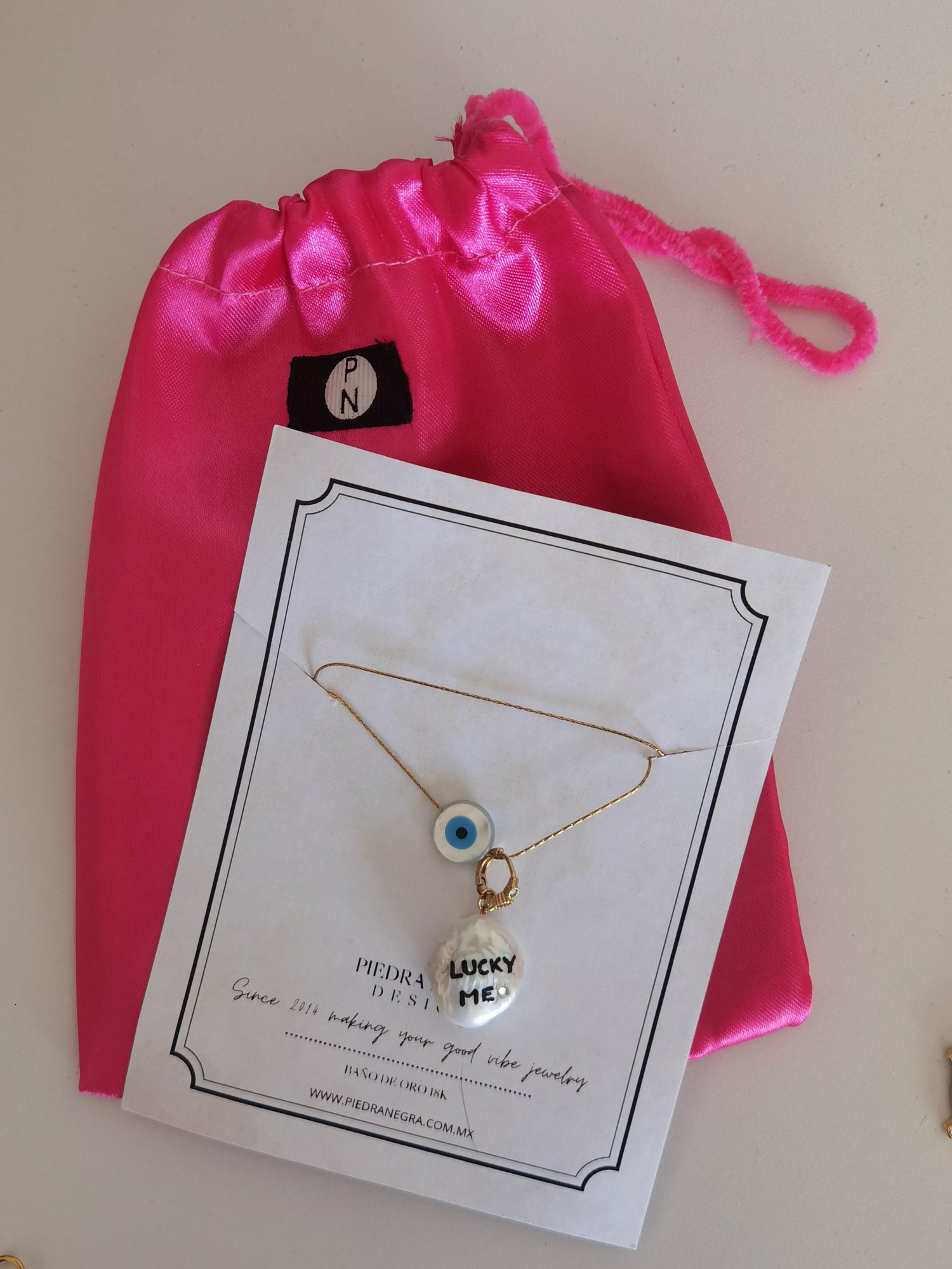 Collar de ojito madre perla con charm de perla calabazon natural , que puedes usar como charm o arete.