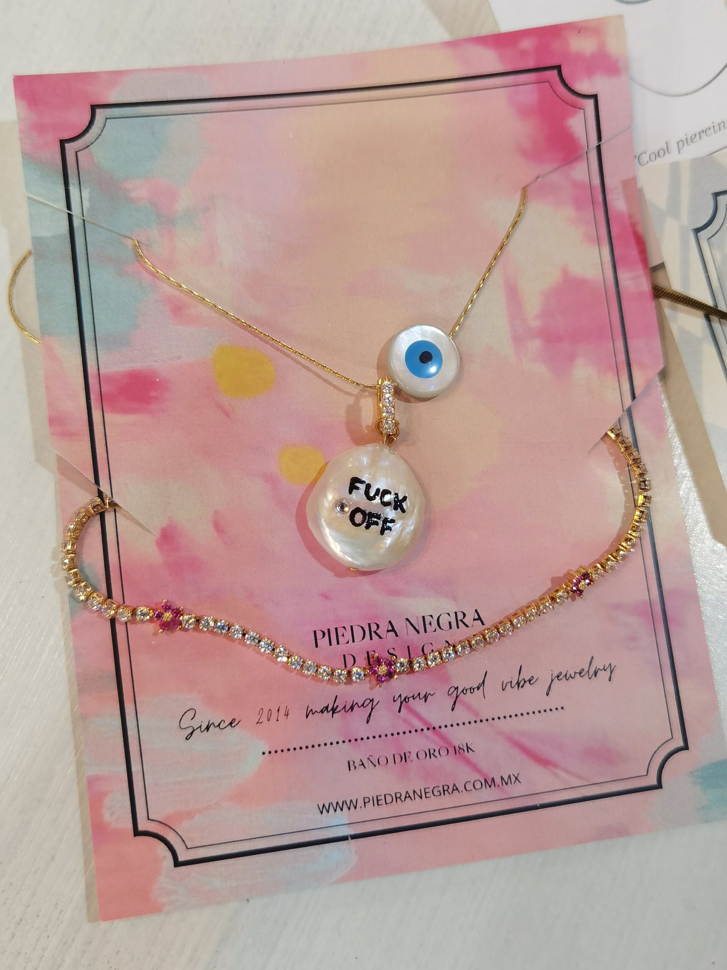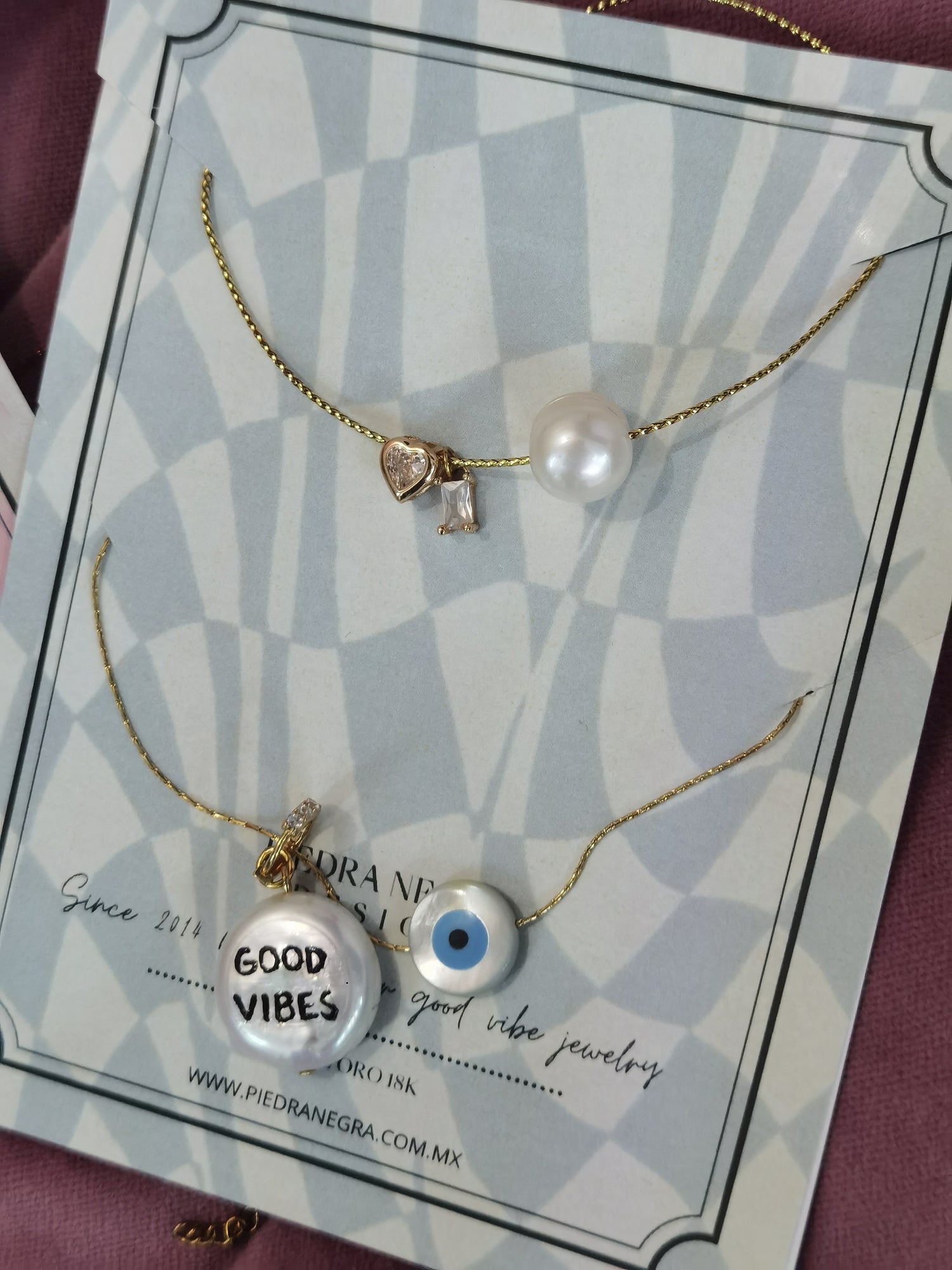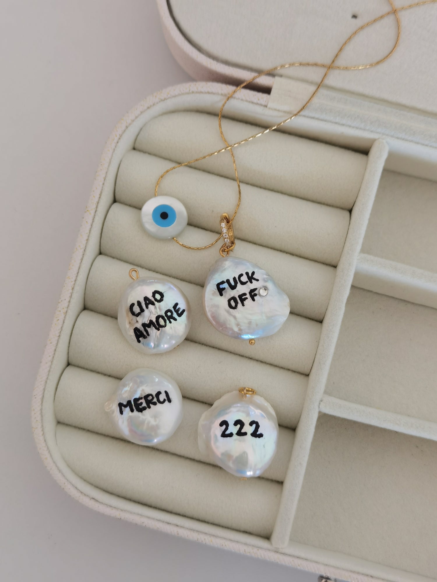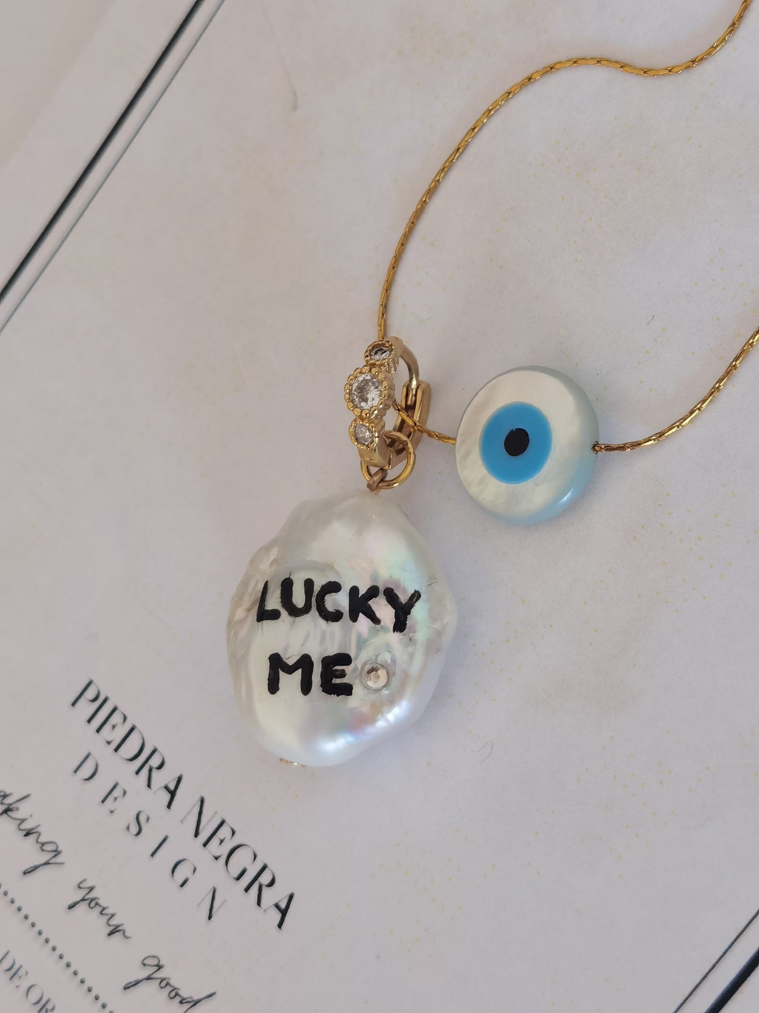 Collar de ojito madre perla con charm de perla calabazon natural , que puedes usar como charm o arete.
