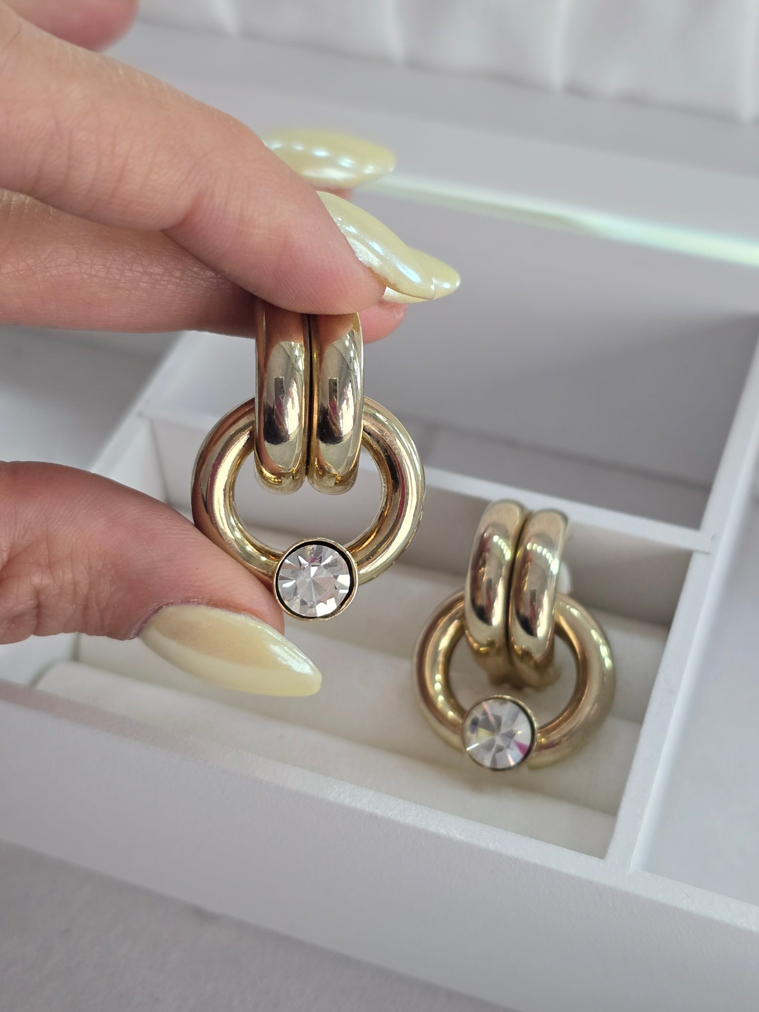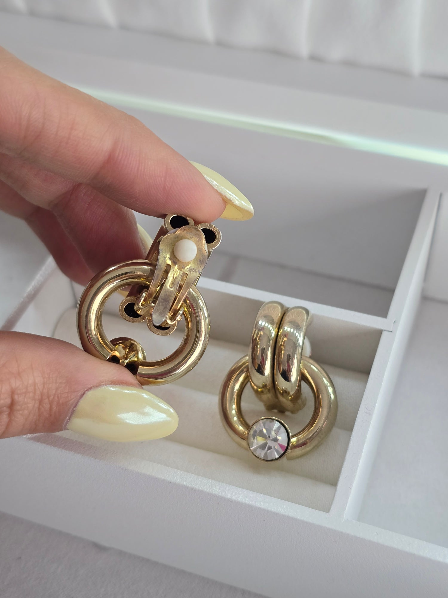 1 en 1 millón! Par de aretes vintage con clip (no necesitas perforación) son ideales para poder usar aretes grandes sin que la oreja cuelgue o se lastime 🙌🏼❤️, un tesoro que sólo tu vas a tener ya que esta es una joya preloved (con uso) , un diseño único y exclusivo .