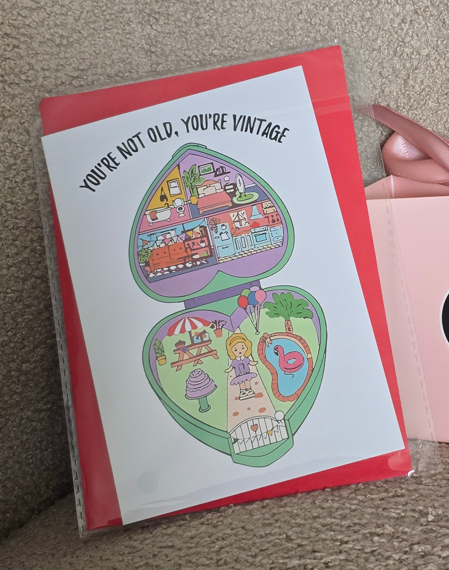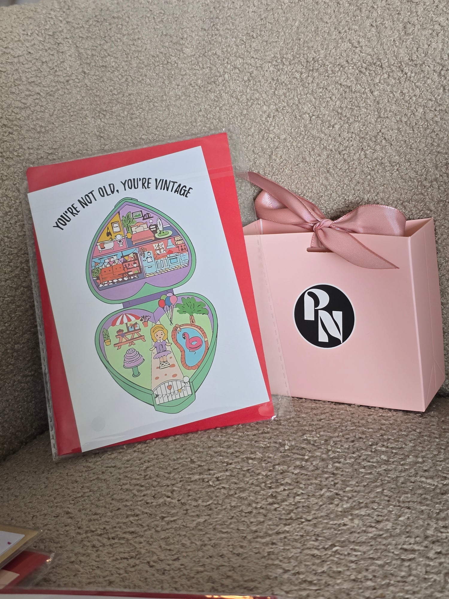 Kit cumpleaños! incluye tarjeta, sobre y bolsita rosa de regalo