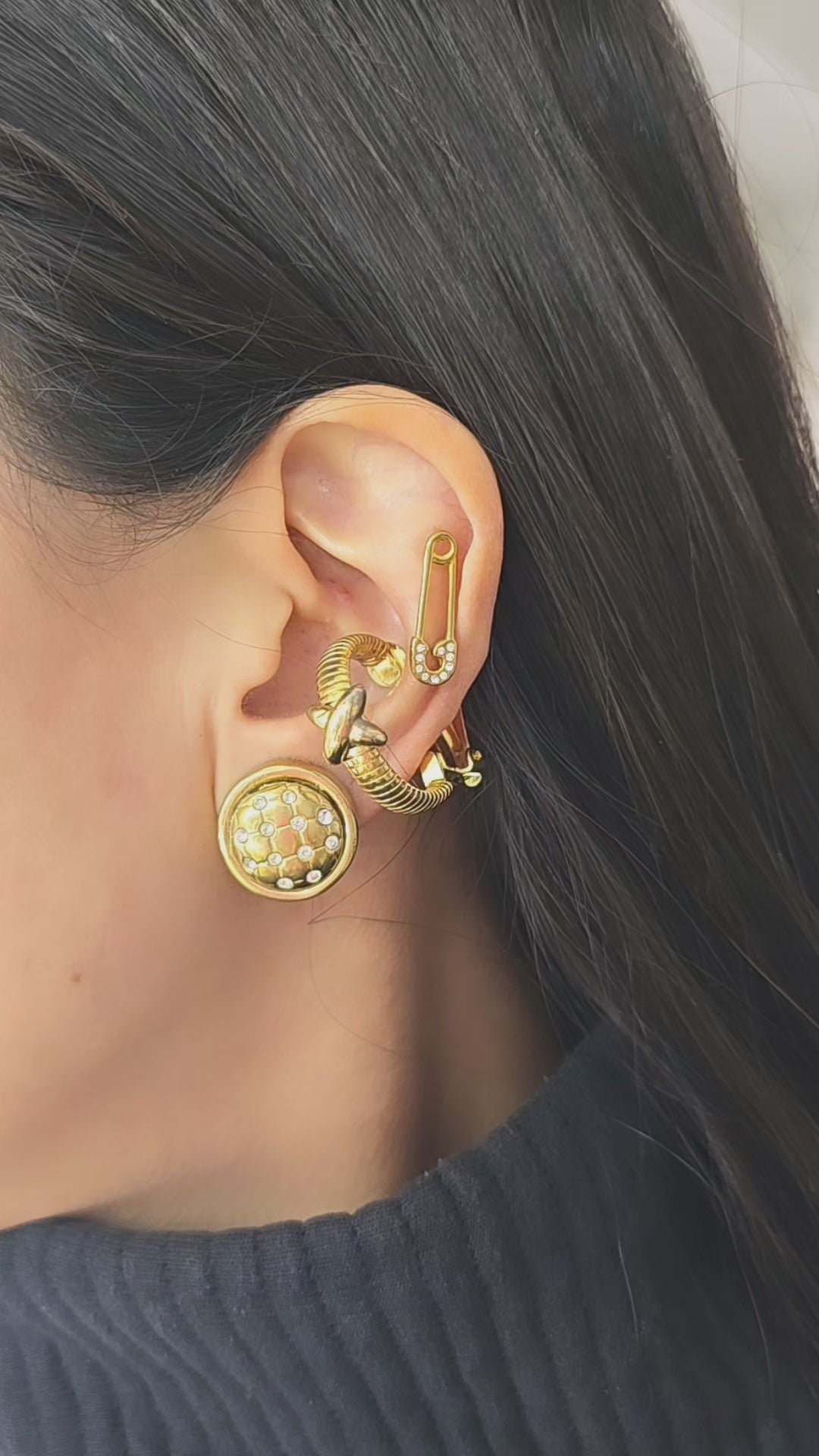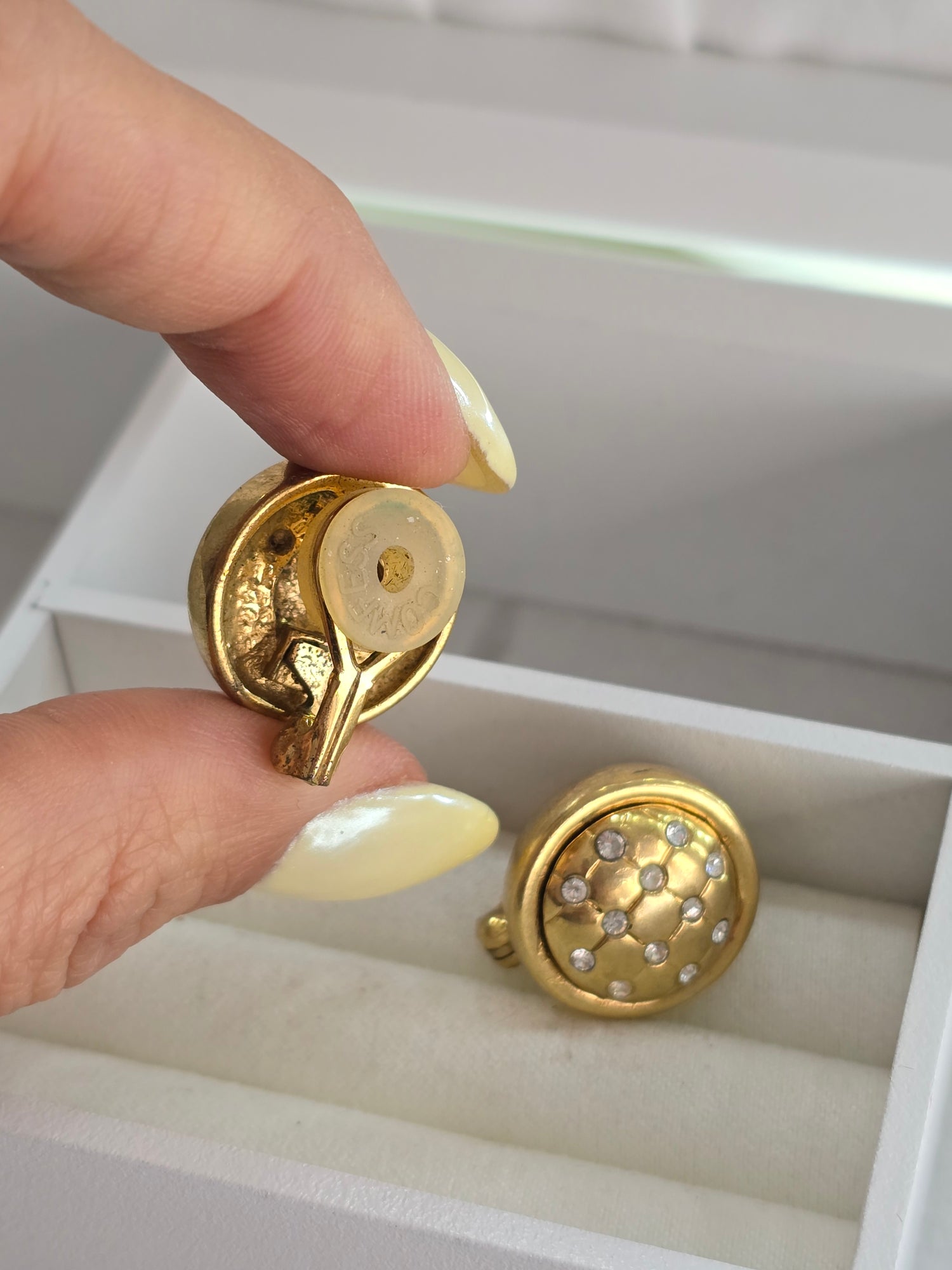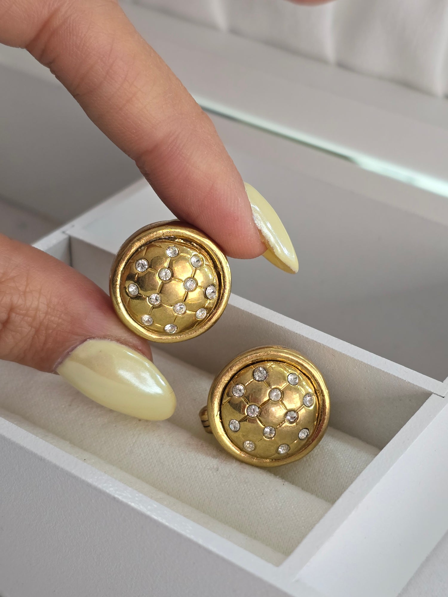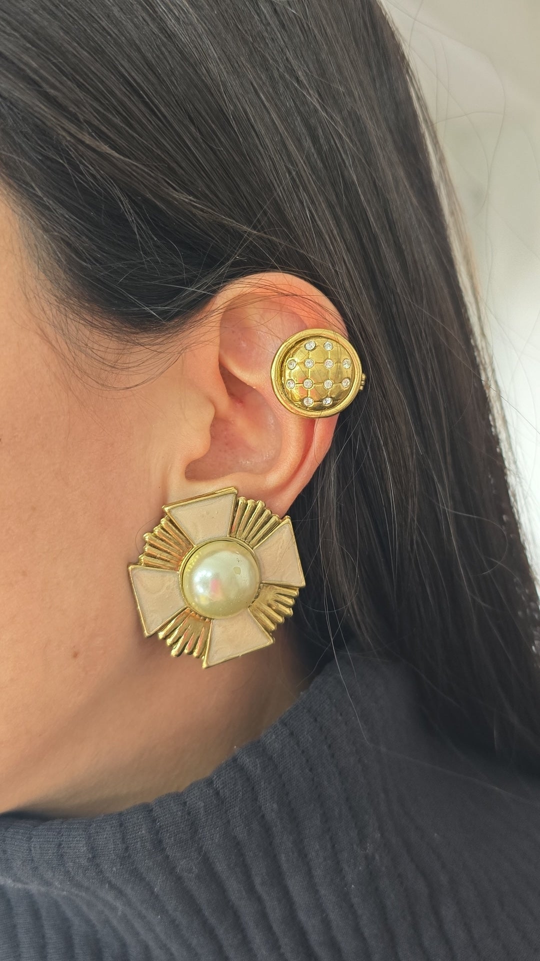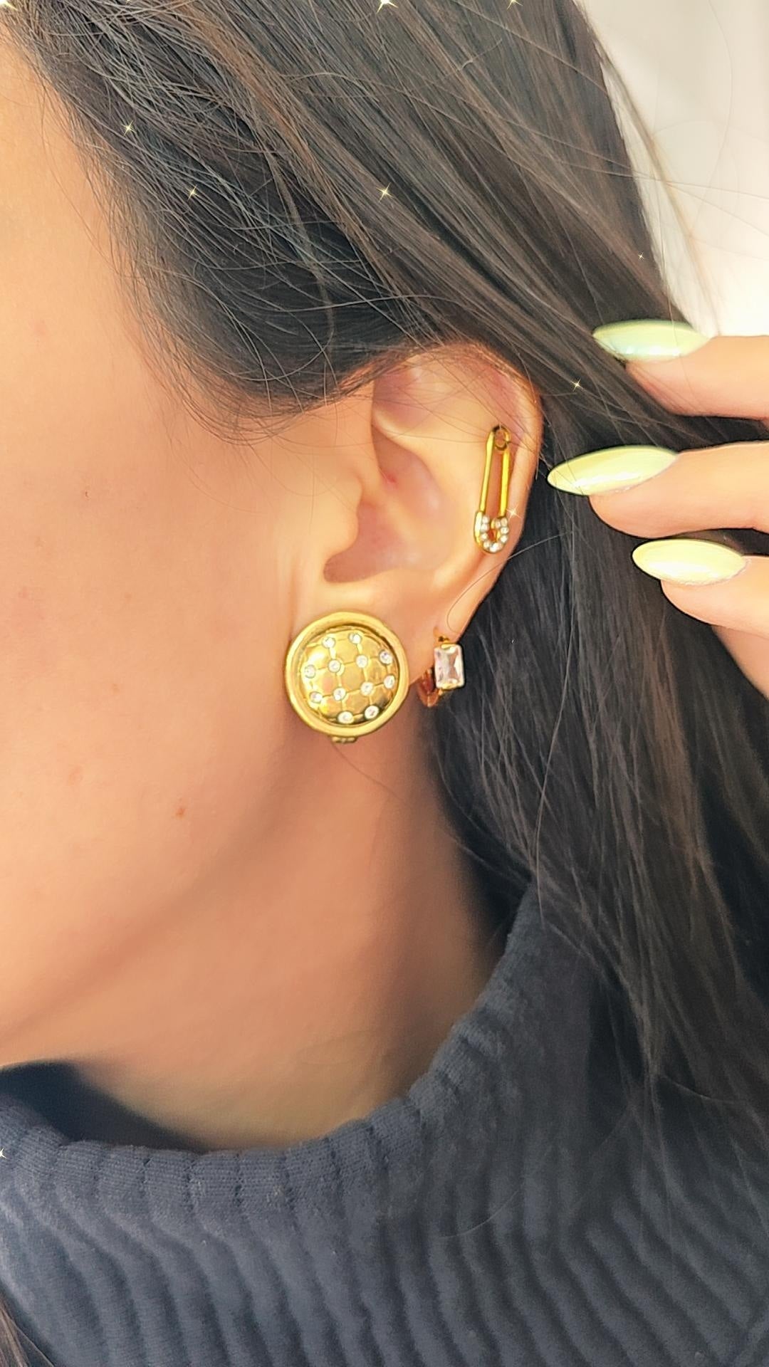 1 en 1 millón! Par de aretes vintage con clip (no necesitas perforación) son ideales para poder usar aretes grandes sin que la oreja cuelgue o se lastime 🙌🏼❤️, un tesoro que sólo tu vas a tener ya que esta es una joya preloved (de uso) , un diseño único y exclusivo .